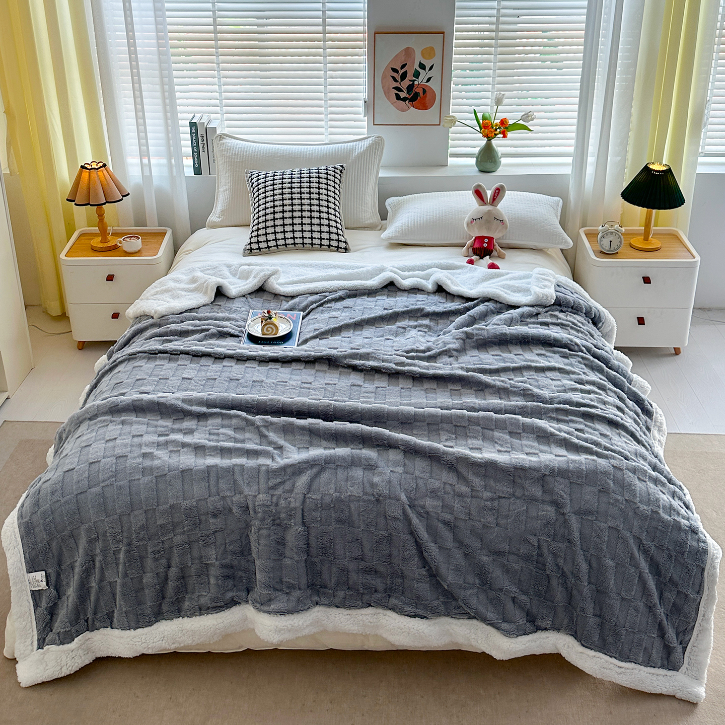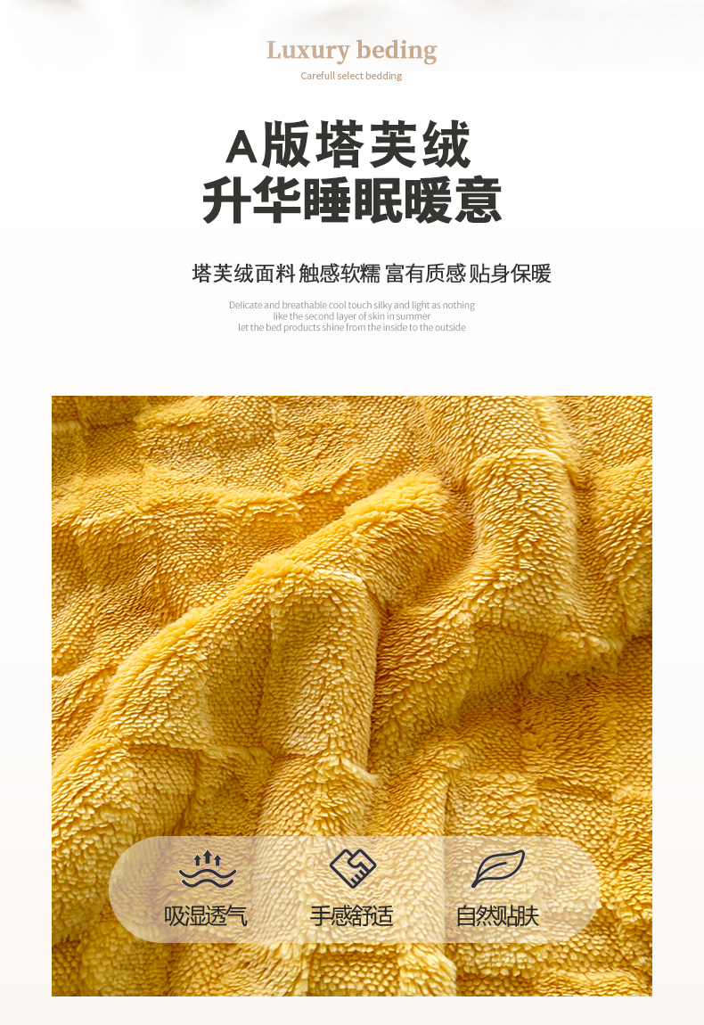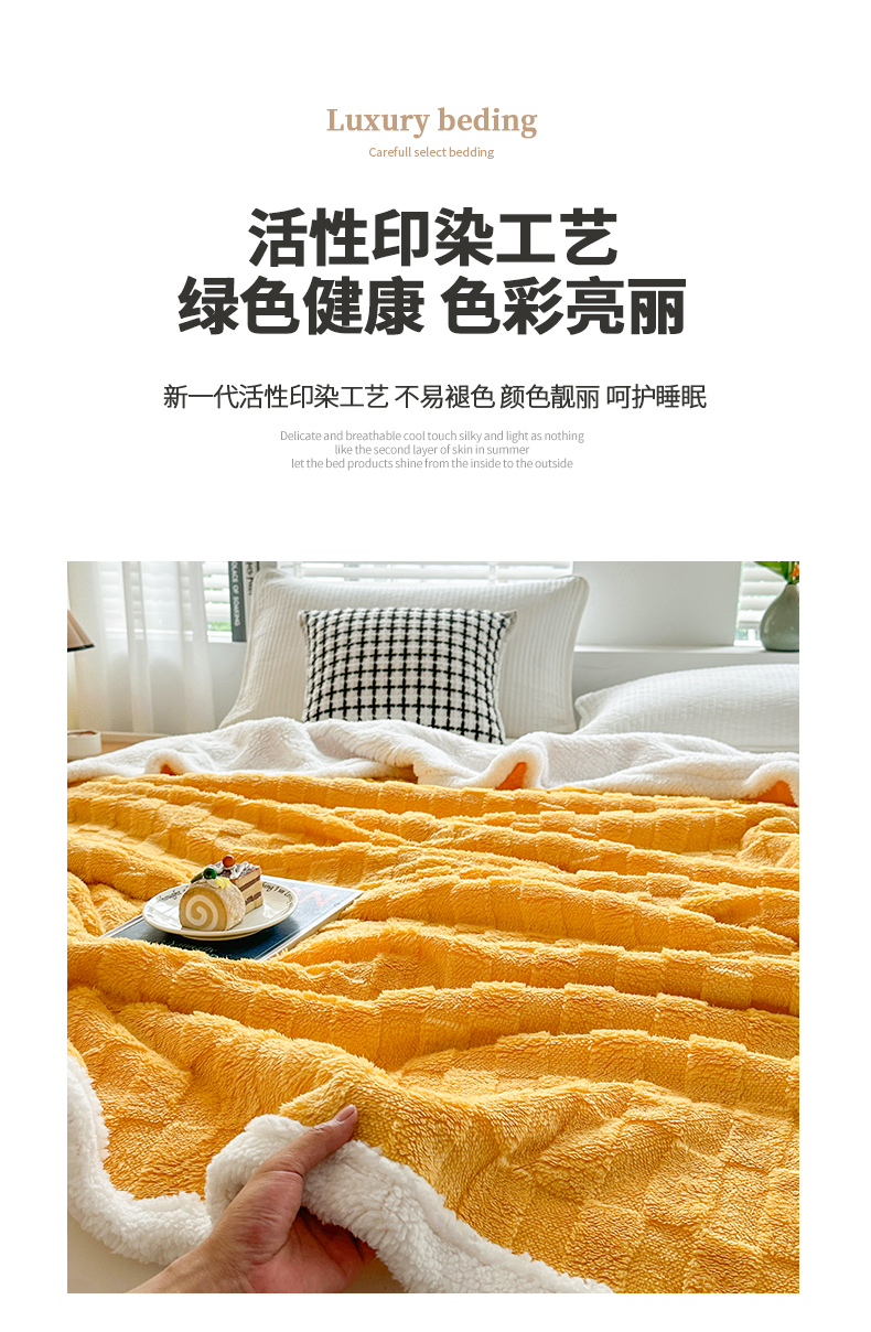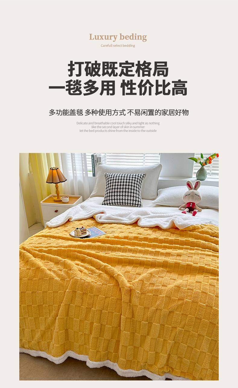 悦织湾家纺 2025新款塔芙绒羊羔绒舒棉绒毛毯方格系列 方格杏黄