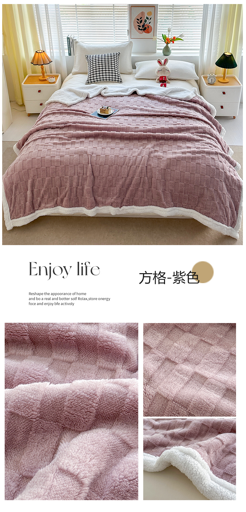 (总)悦织湾家纺 2025炫彩仿兔毛绒泡泡绒牛奶绒法兰绒毛毯休闲毯沙发盖毯跨境外贸出口专供,炫彩粉,炫彩灰,炫彩咖,炫彩绿,炫彩紫