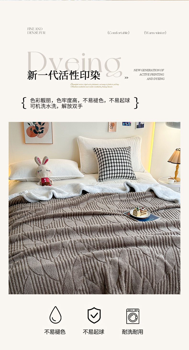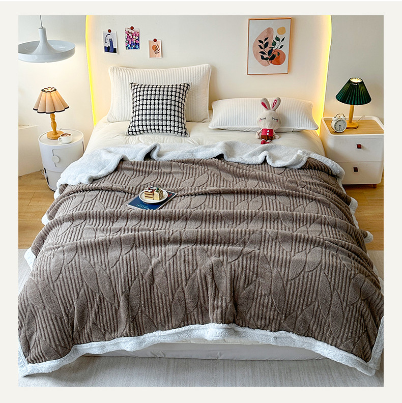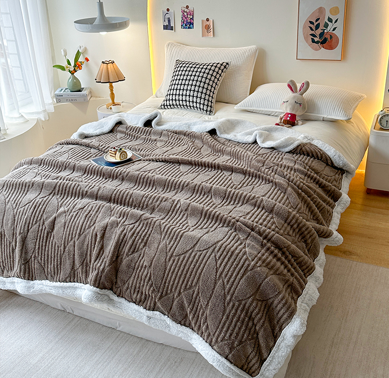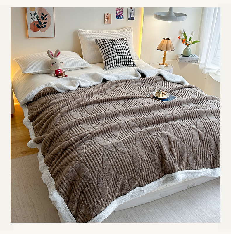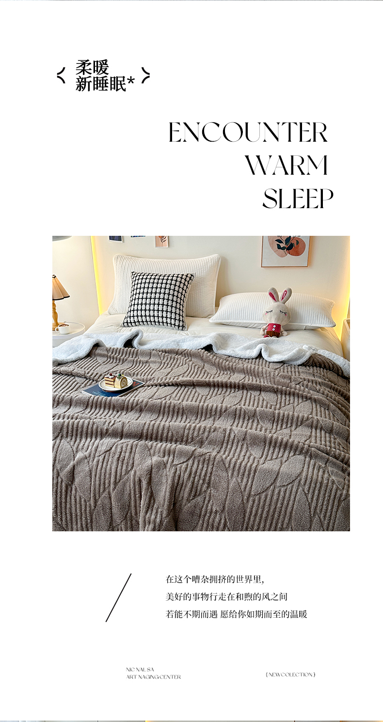 商品名称:悦织湾家纺 2025新款塔芙绒羊羔绒舒棉绒毛毯叶子系列 叶子棕色