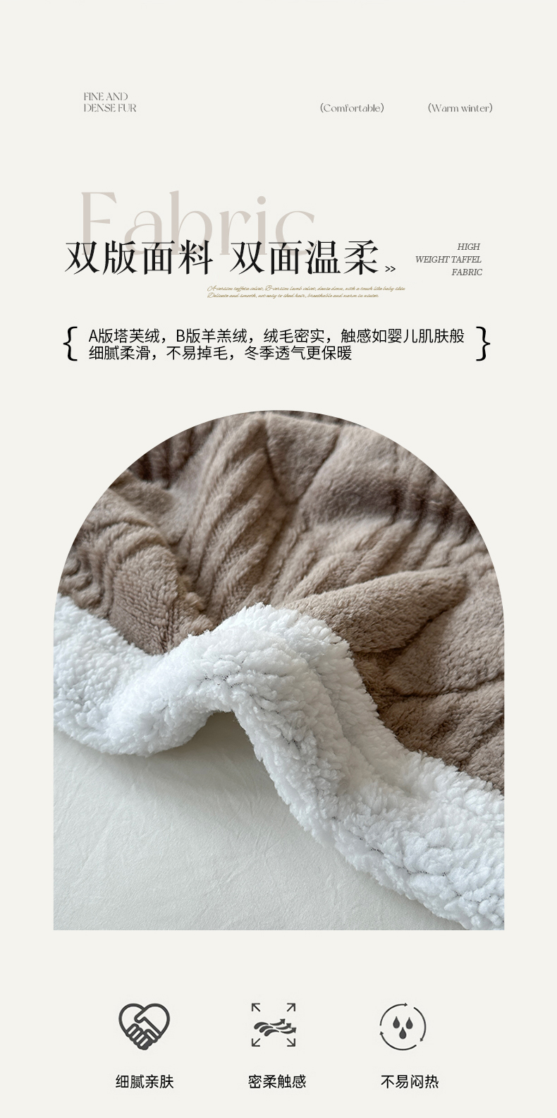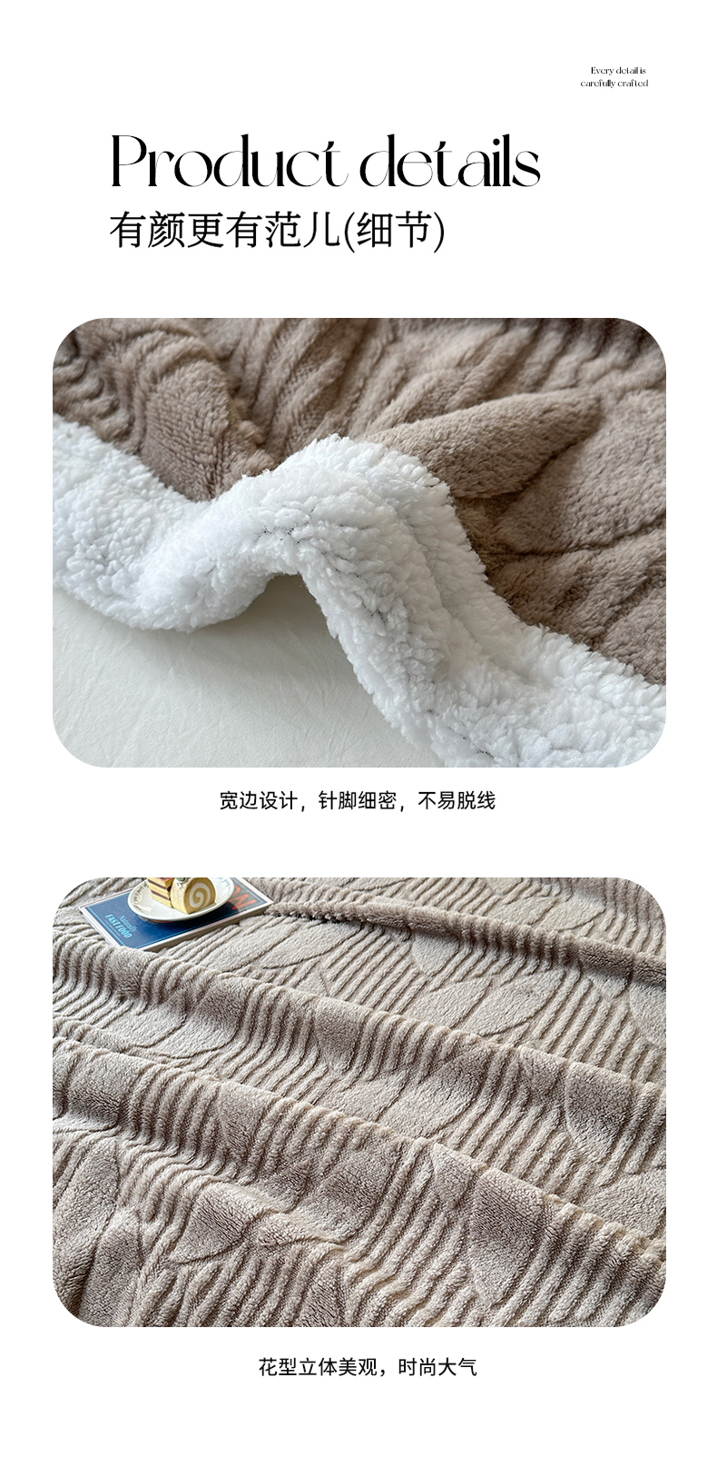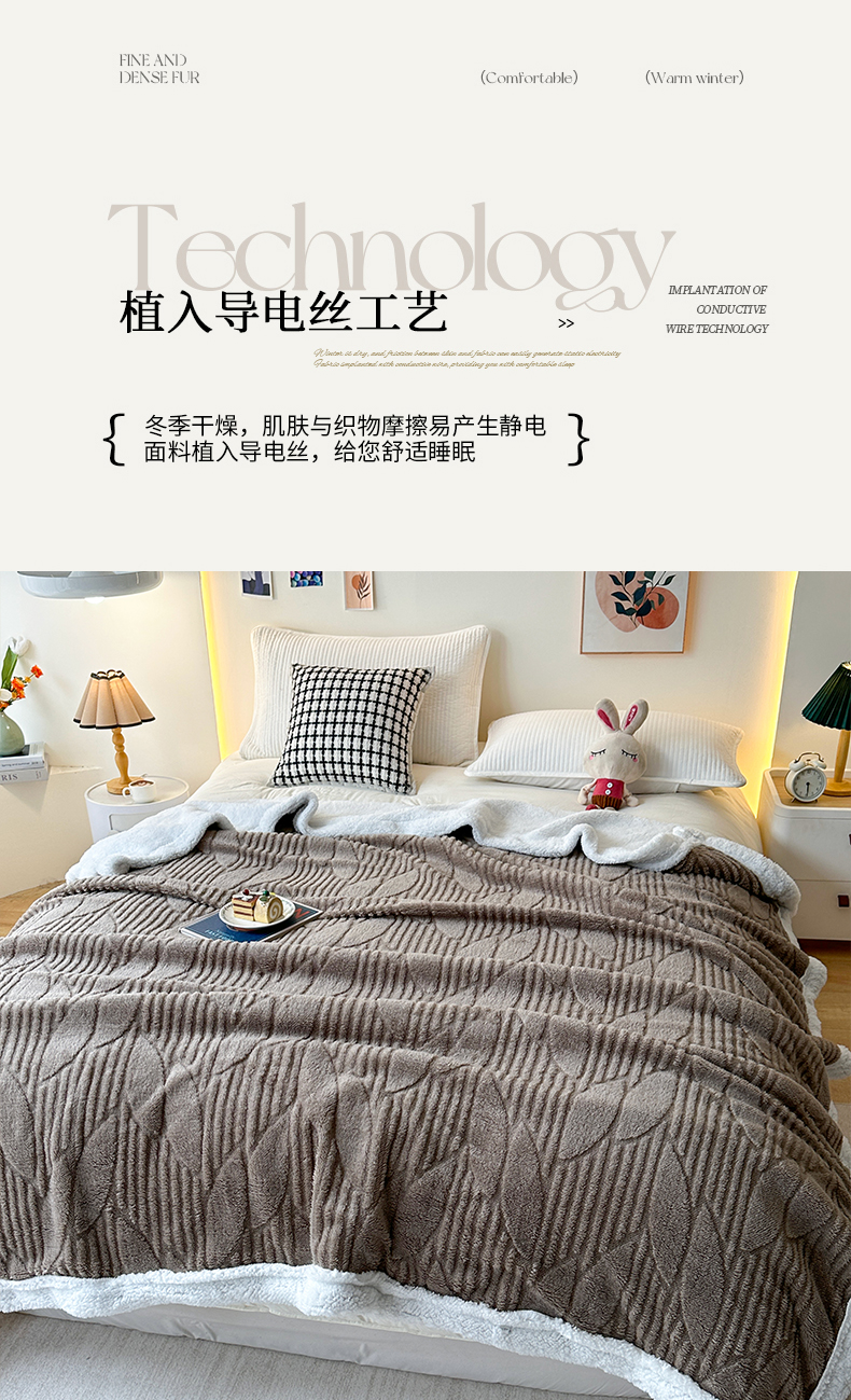 商品名称:悦织湾家纺 2025新款塔芙绒羊羔绒舒棉绒毛毯叶子系列 叶子棕色