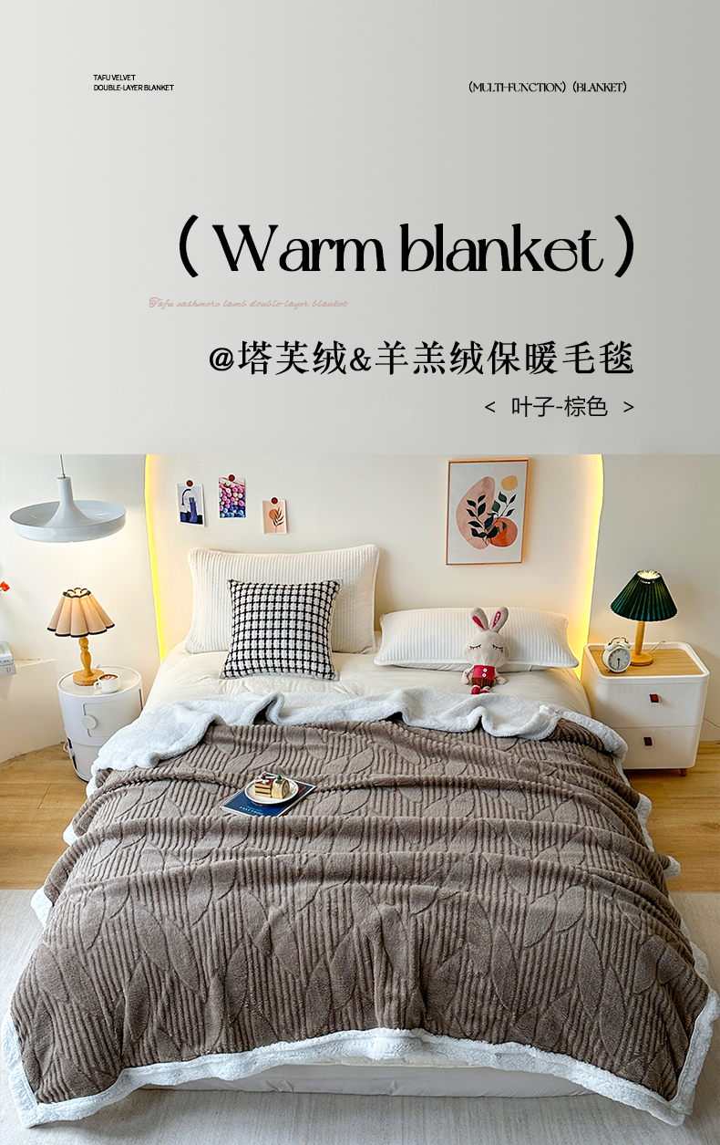 悦织湾家纺 2025新款塔芙绒羊羔绒舒棉绒毛毯叶子系列 叶子棕色