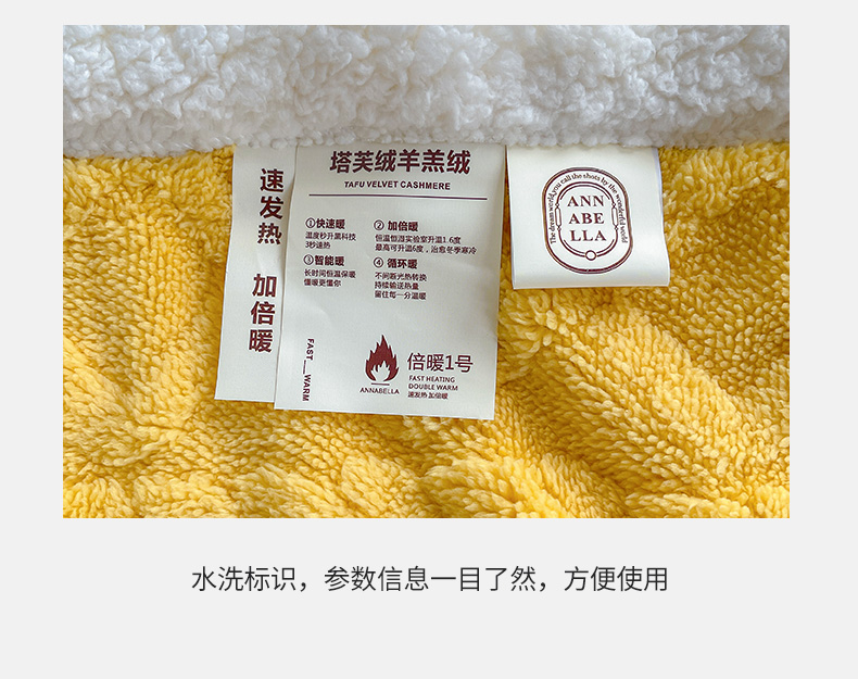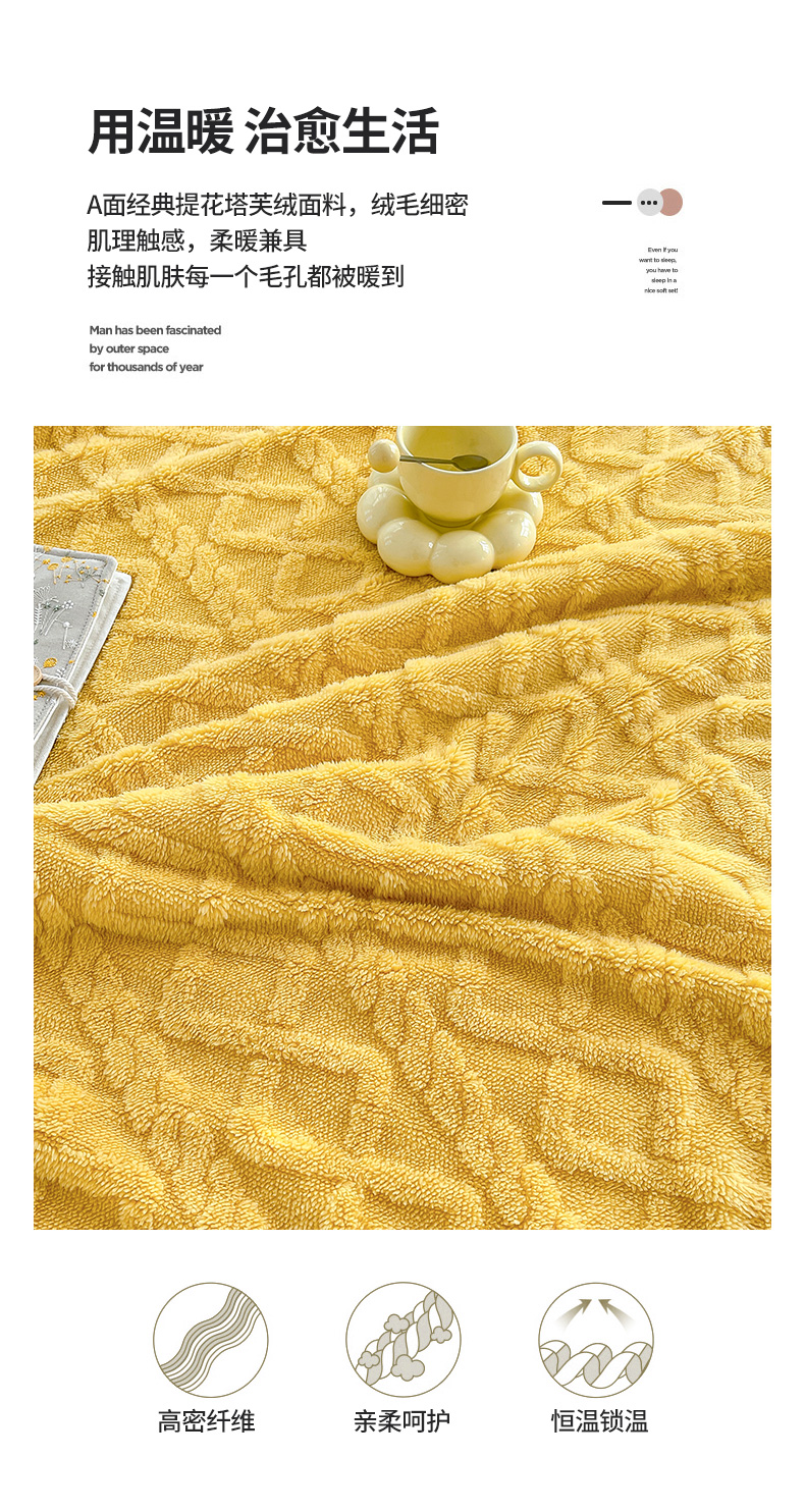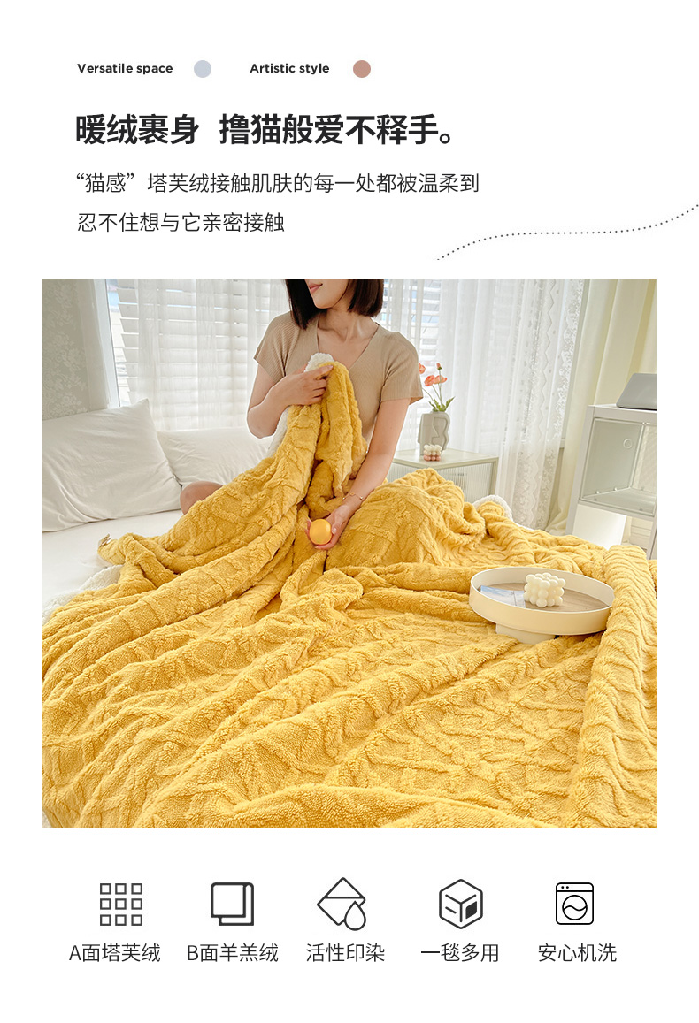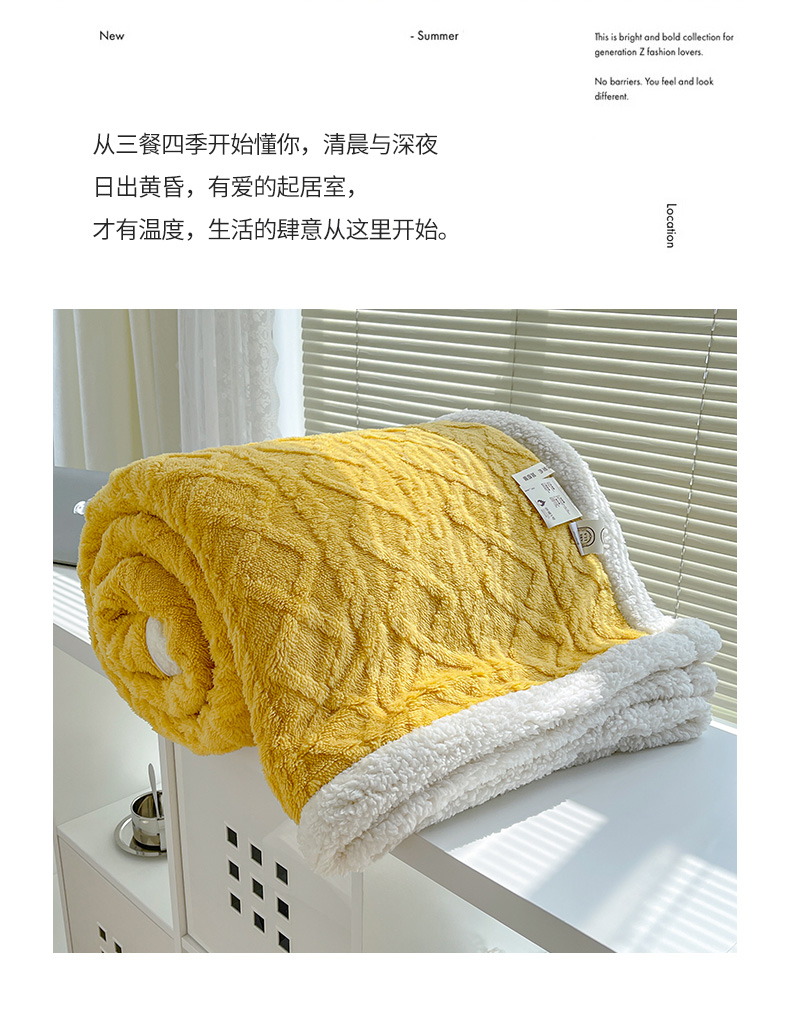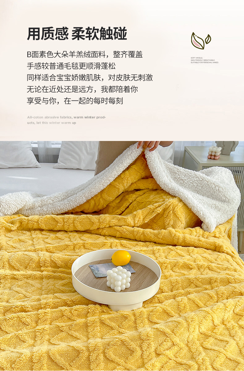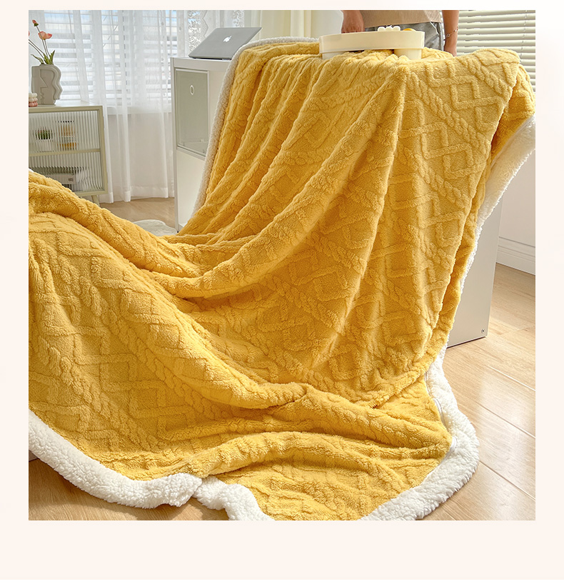 商品名称:悦织湾家纺 2025新款塔芙绒羊羔绒舒棉绒毛毯麻花格系列 麻花格-黄色
