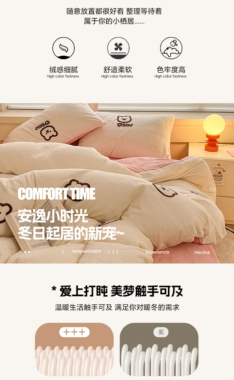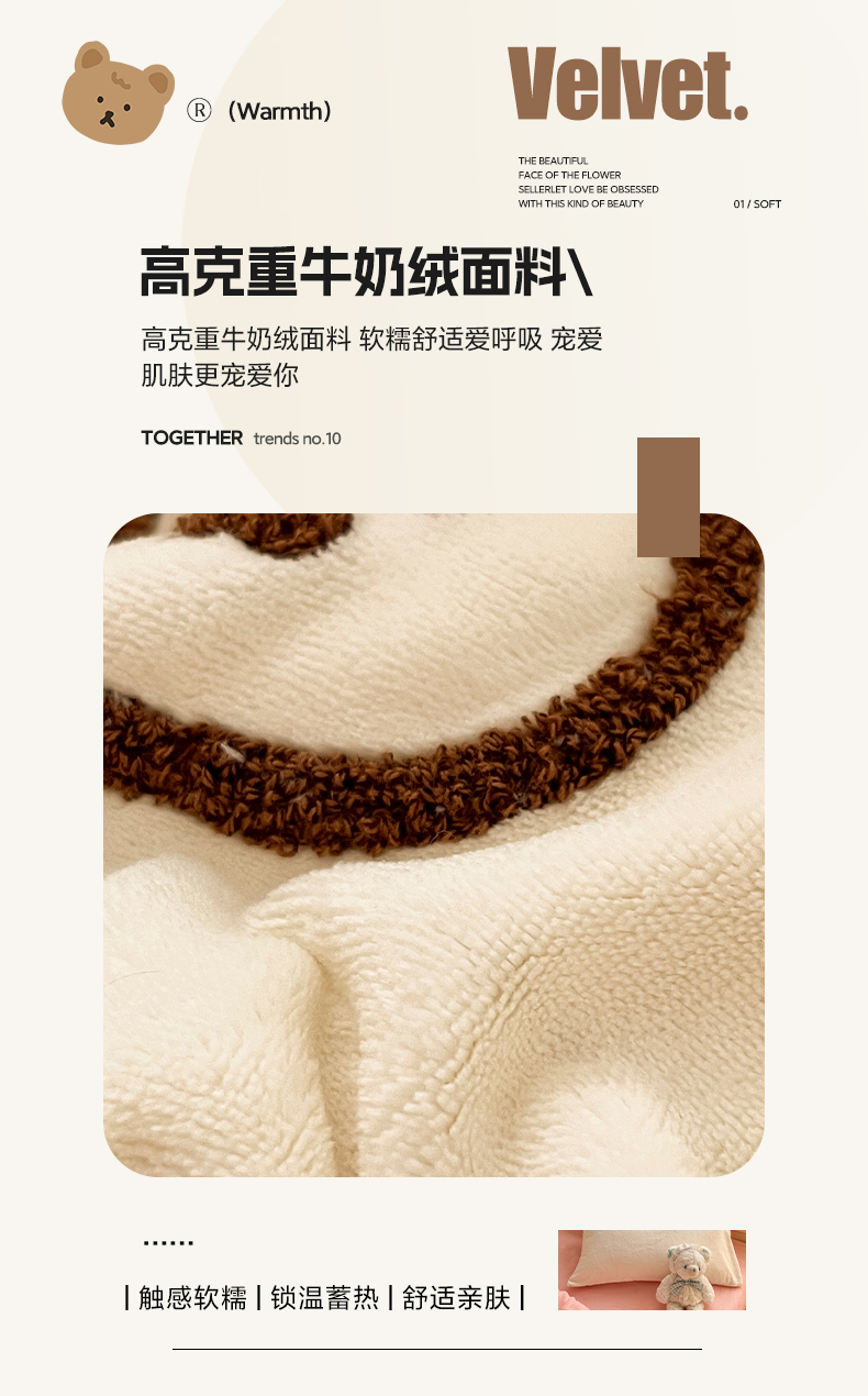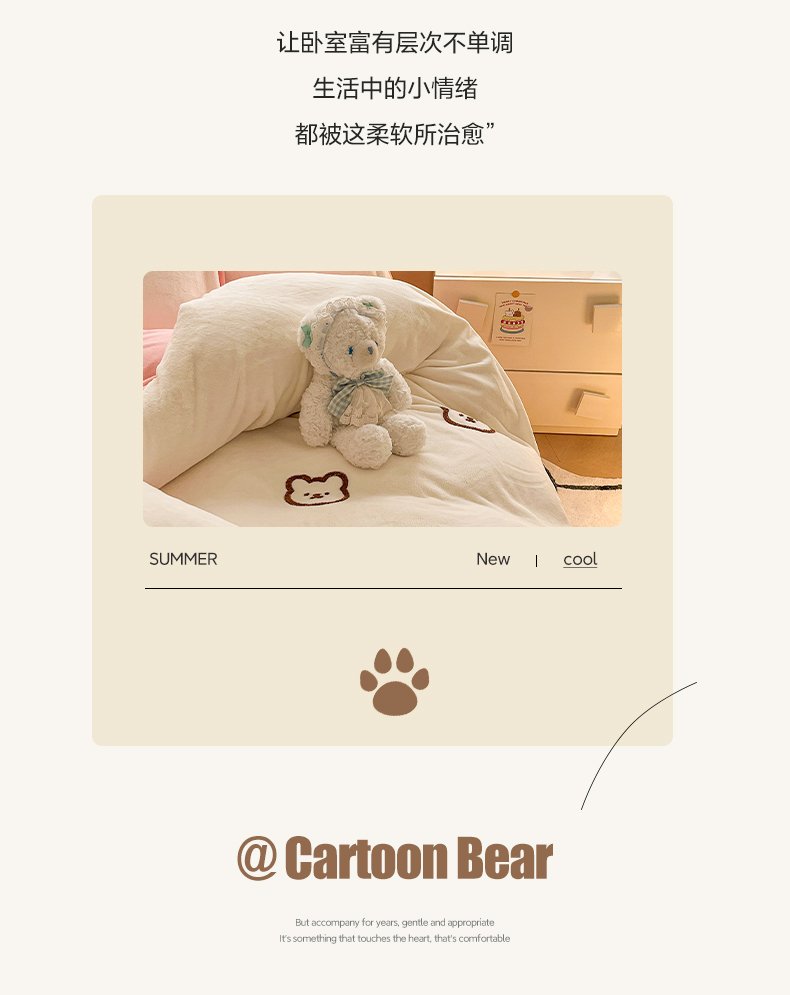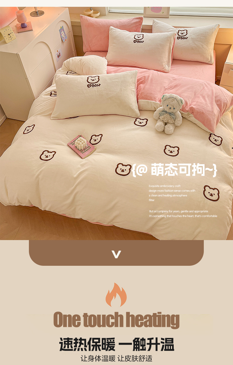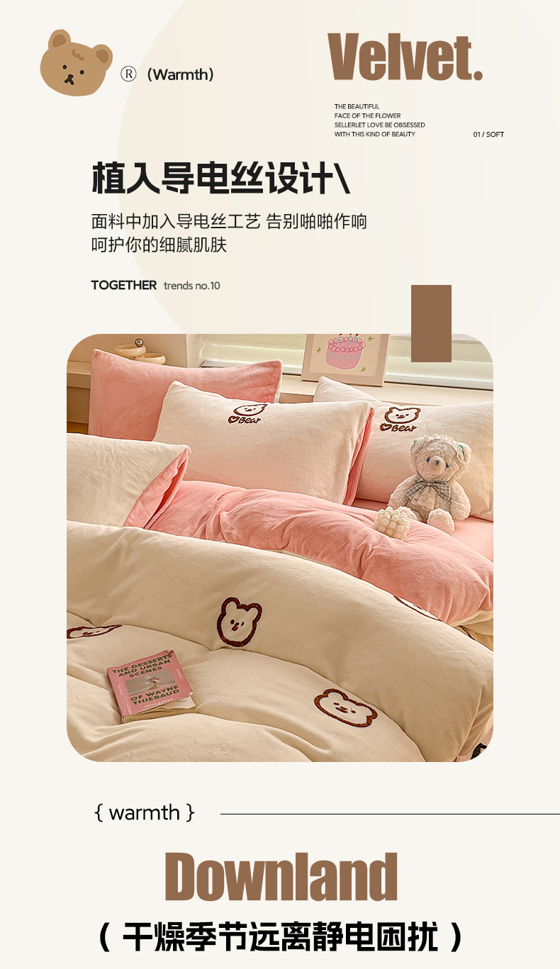 商品名称:雅居纺家纺 2025新款高克重牛奶绒毛巾绣四件套-小熊系列 小熊-白粉