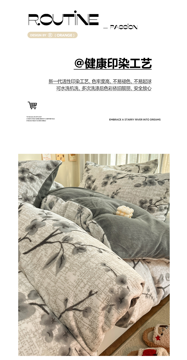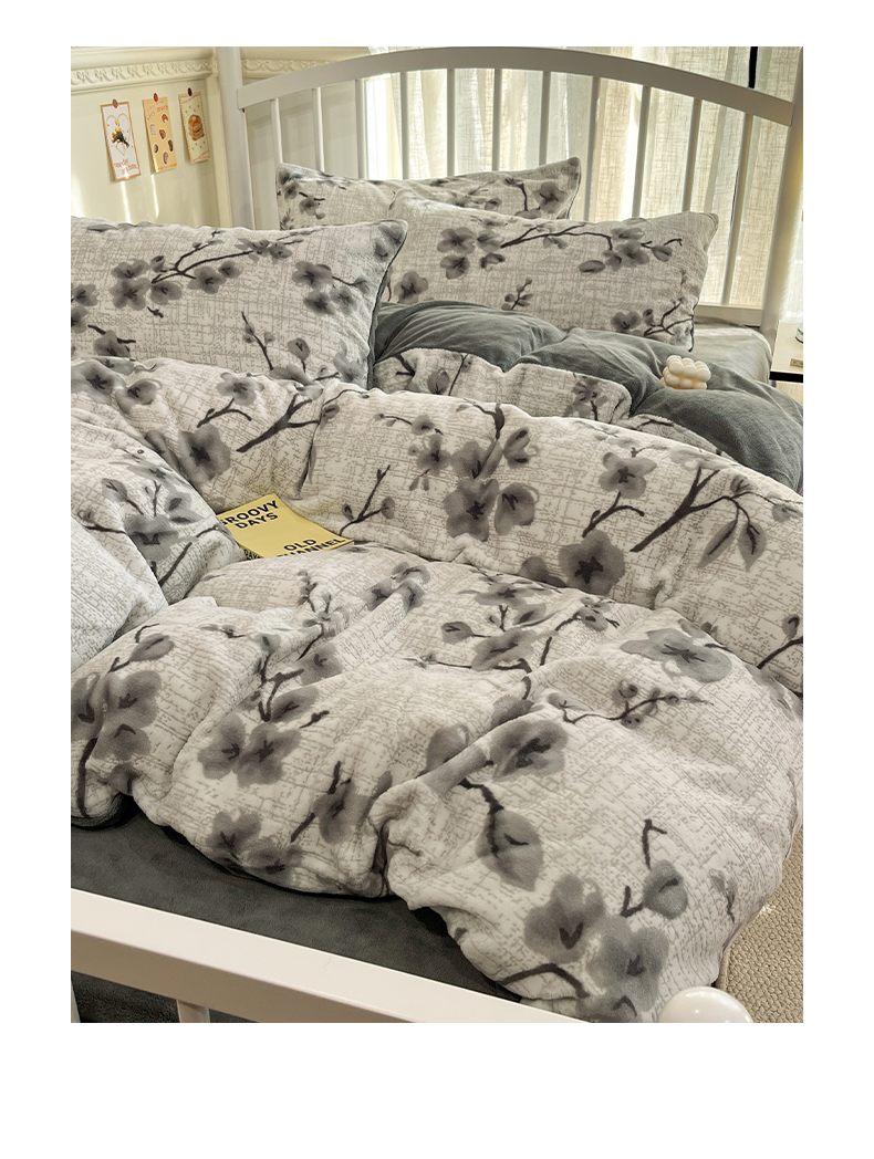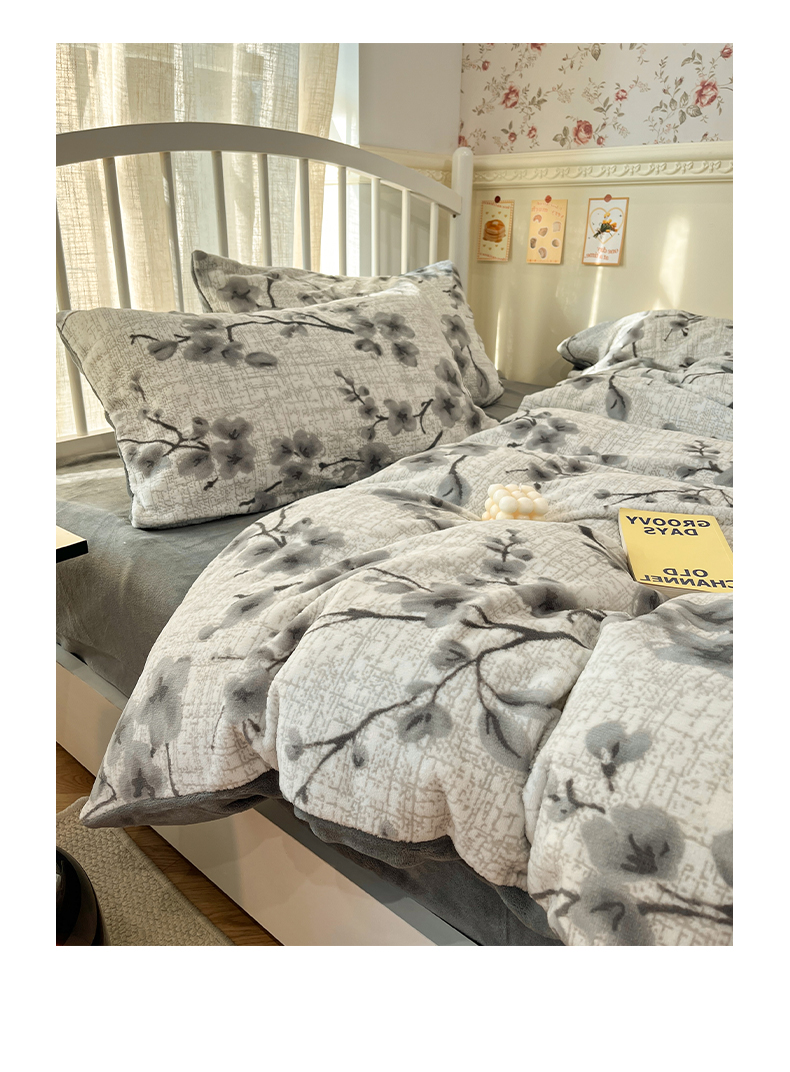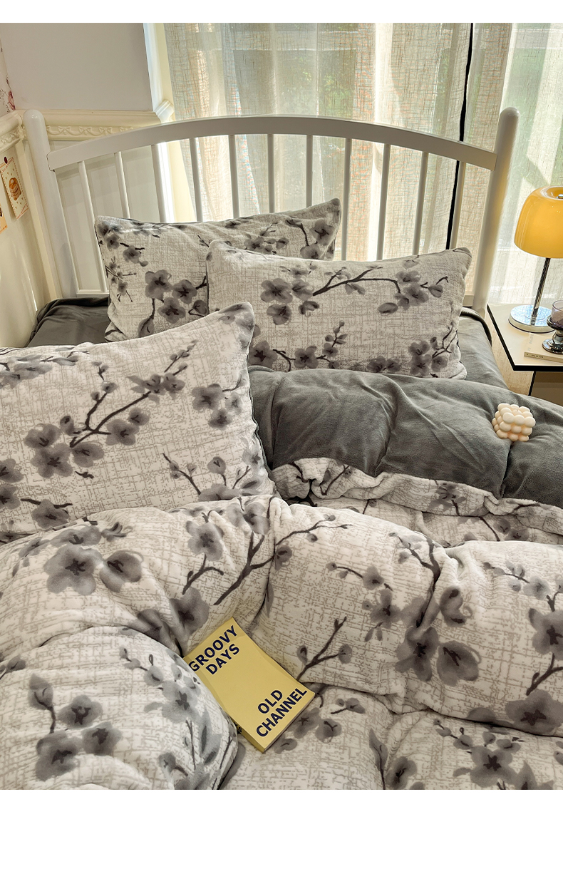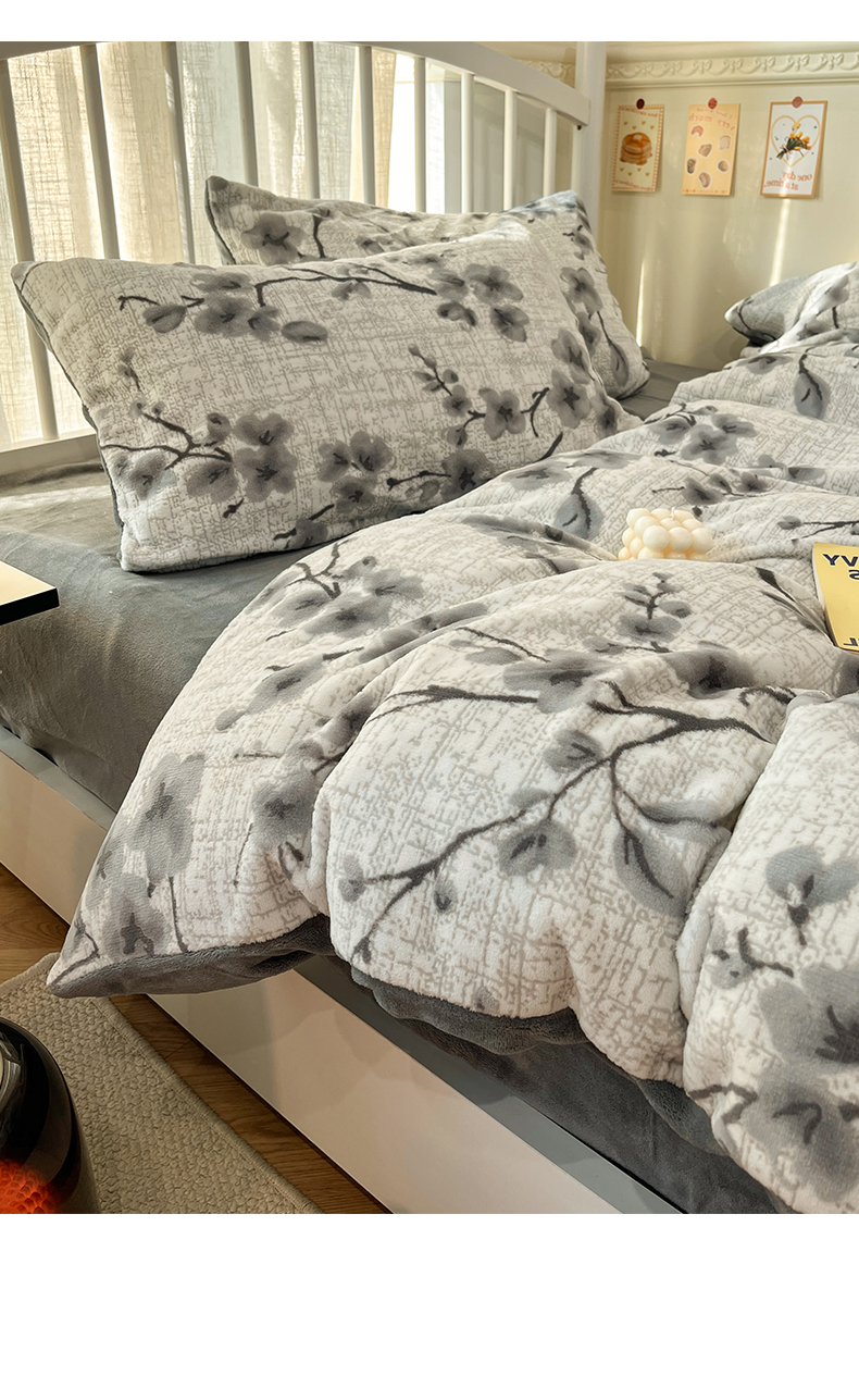 雅居纺家纺 2025新款花卉雕花绒加厚保暖四件套 柏林梦境-灰