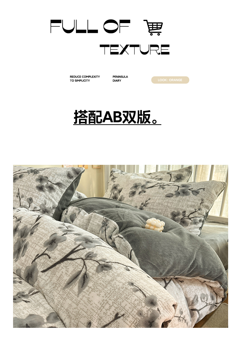 商品名称:雅居纺家纺 2025新款花卉雕花绒加厚保暖四件套 柏林梦境-灰