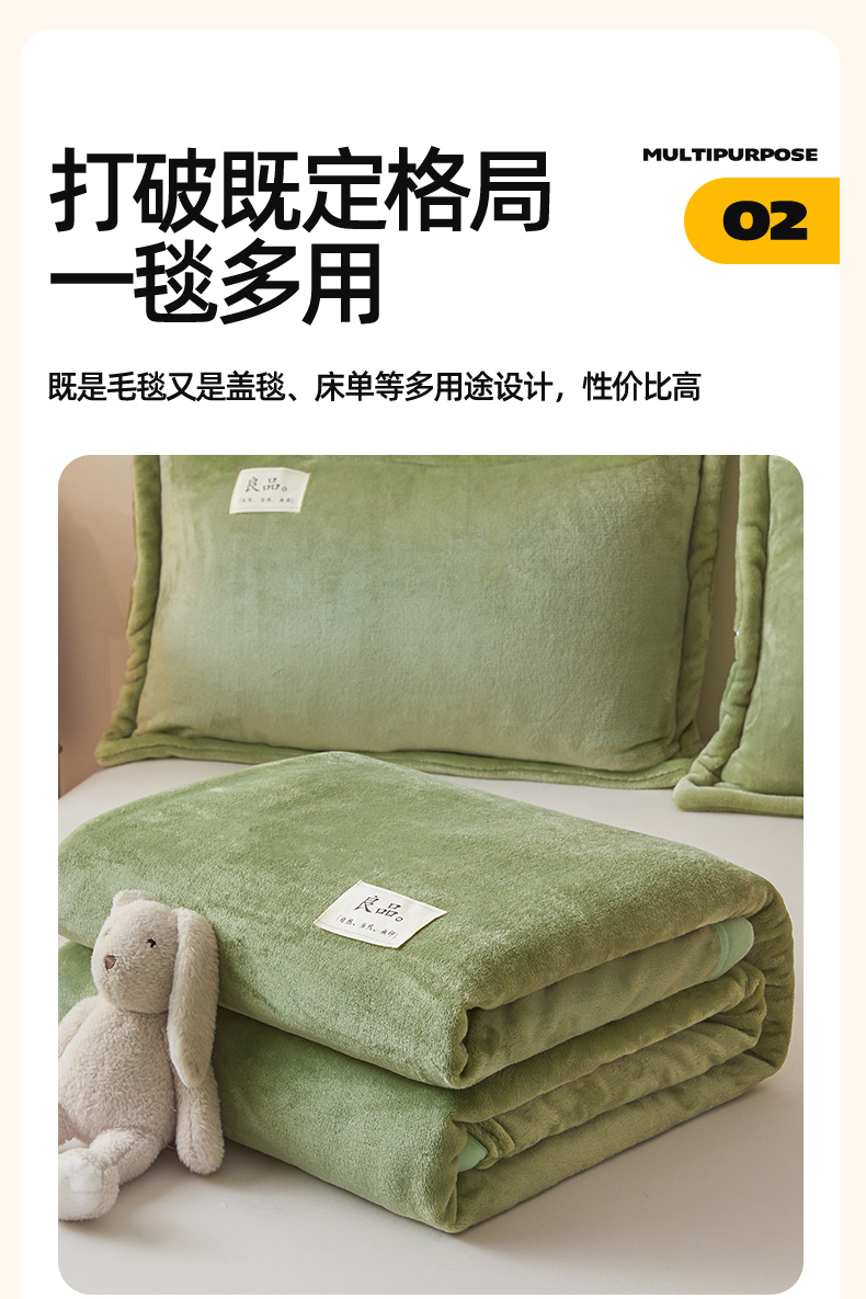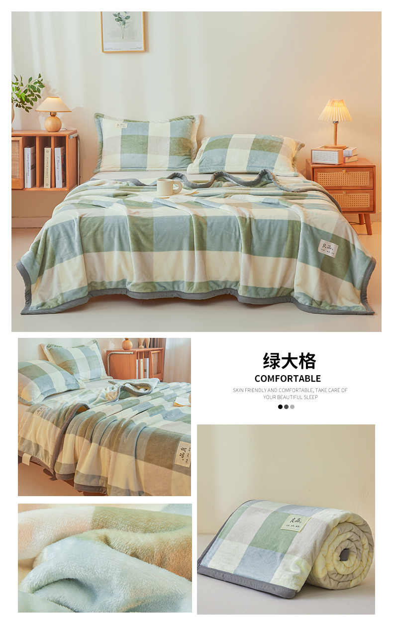 当前位置: 91家纺网 > 商品网购 > 毛毯休闲毯绒毯 > 法莱绒毯 > 多谷家纺 2025新款加厚法莱绒绒双面四季多功能毛毯毯子 绿色