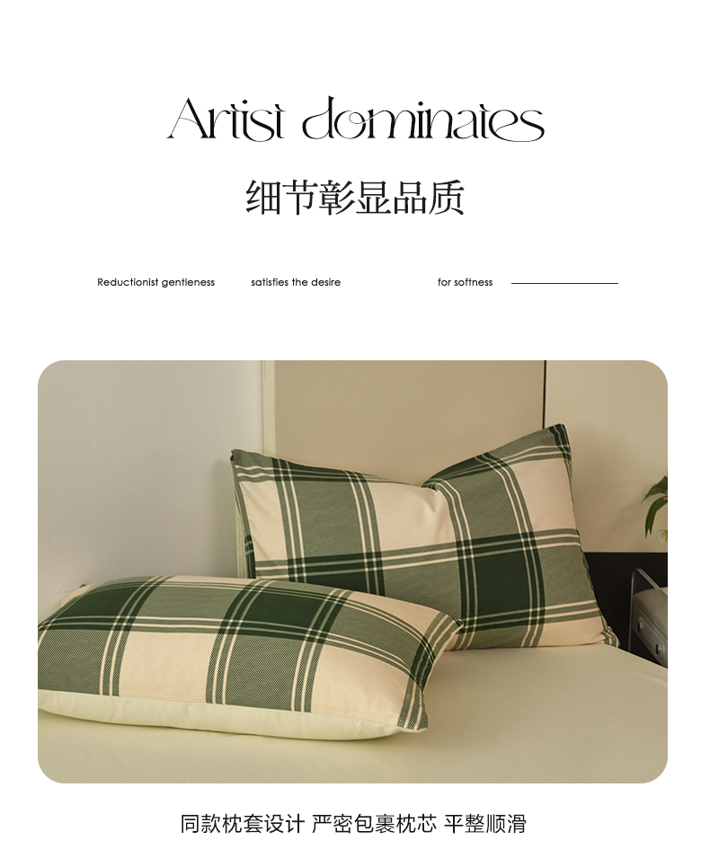 商品名称:雅居纺家纺 2025新款简约款全棉磨毛四件套 半山松石