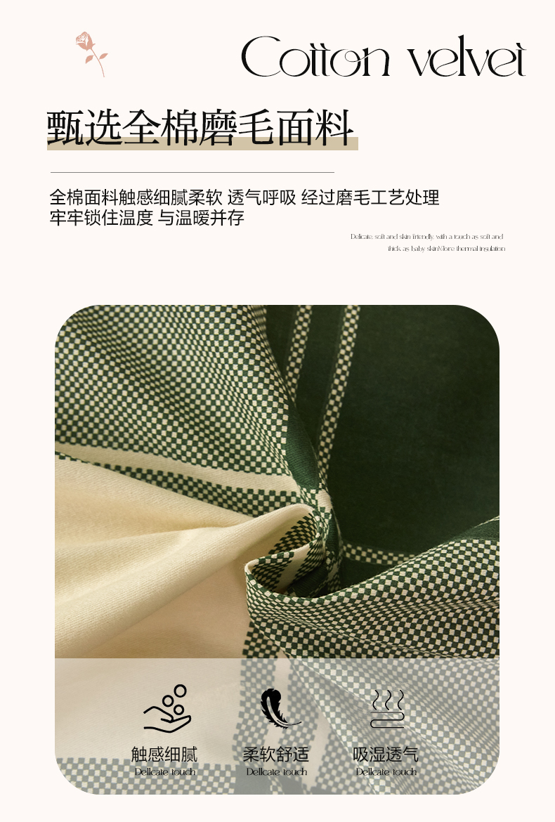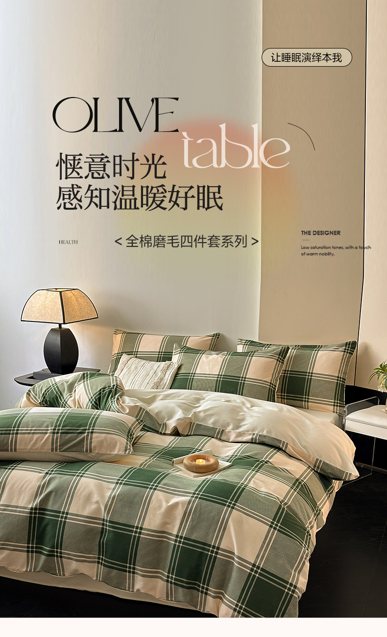 雅居纺家纺 2025新款简约款全棉磨毛四件套 半山松石