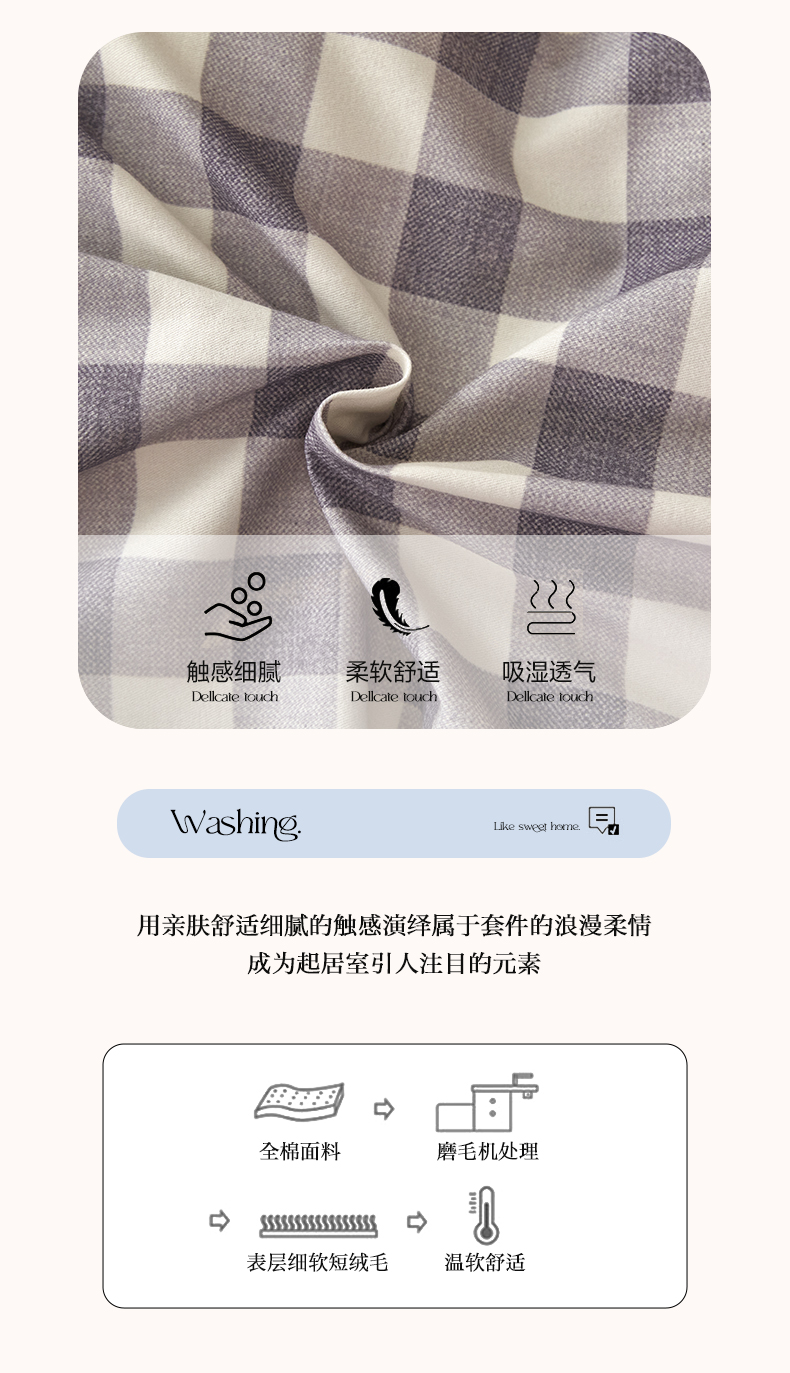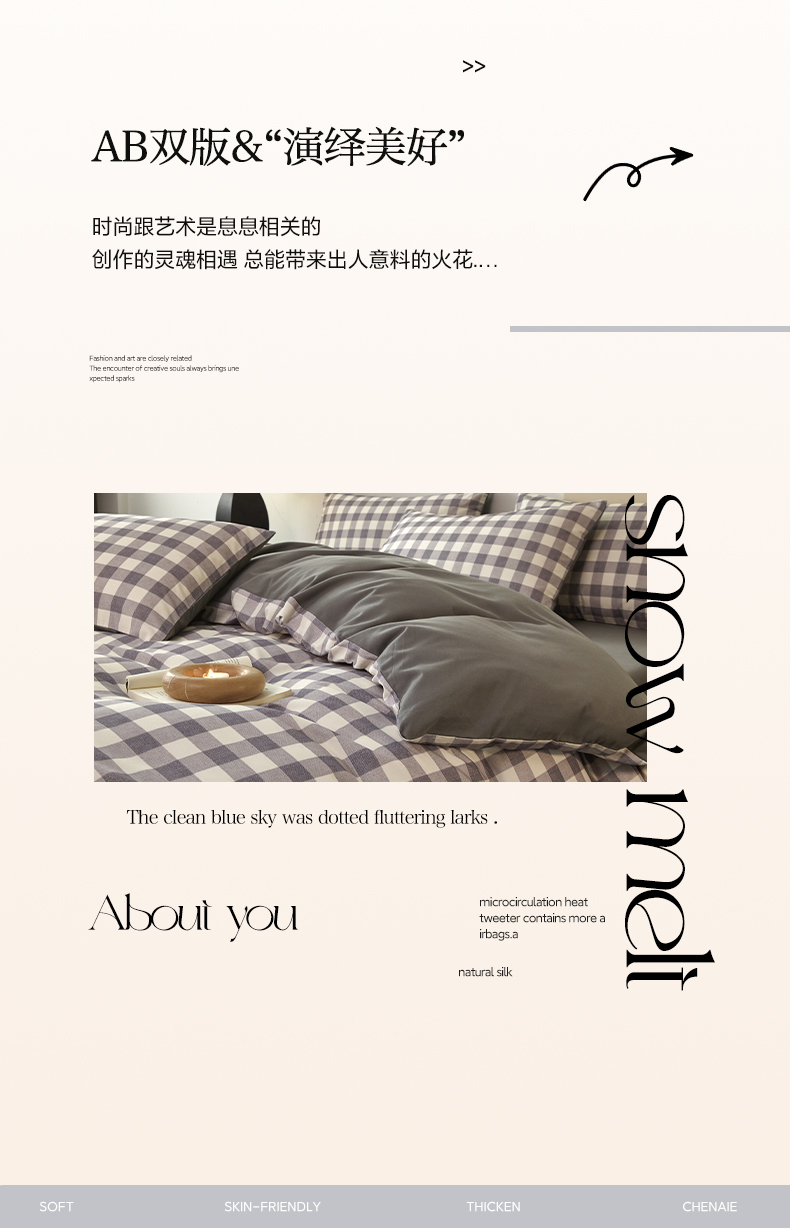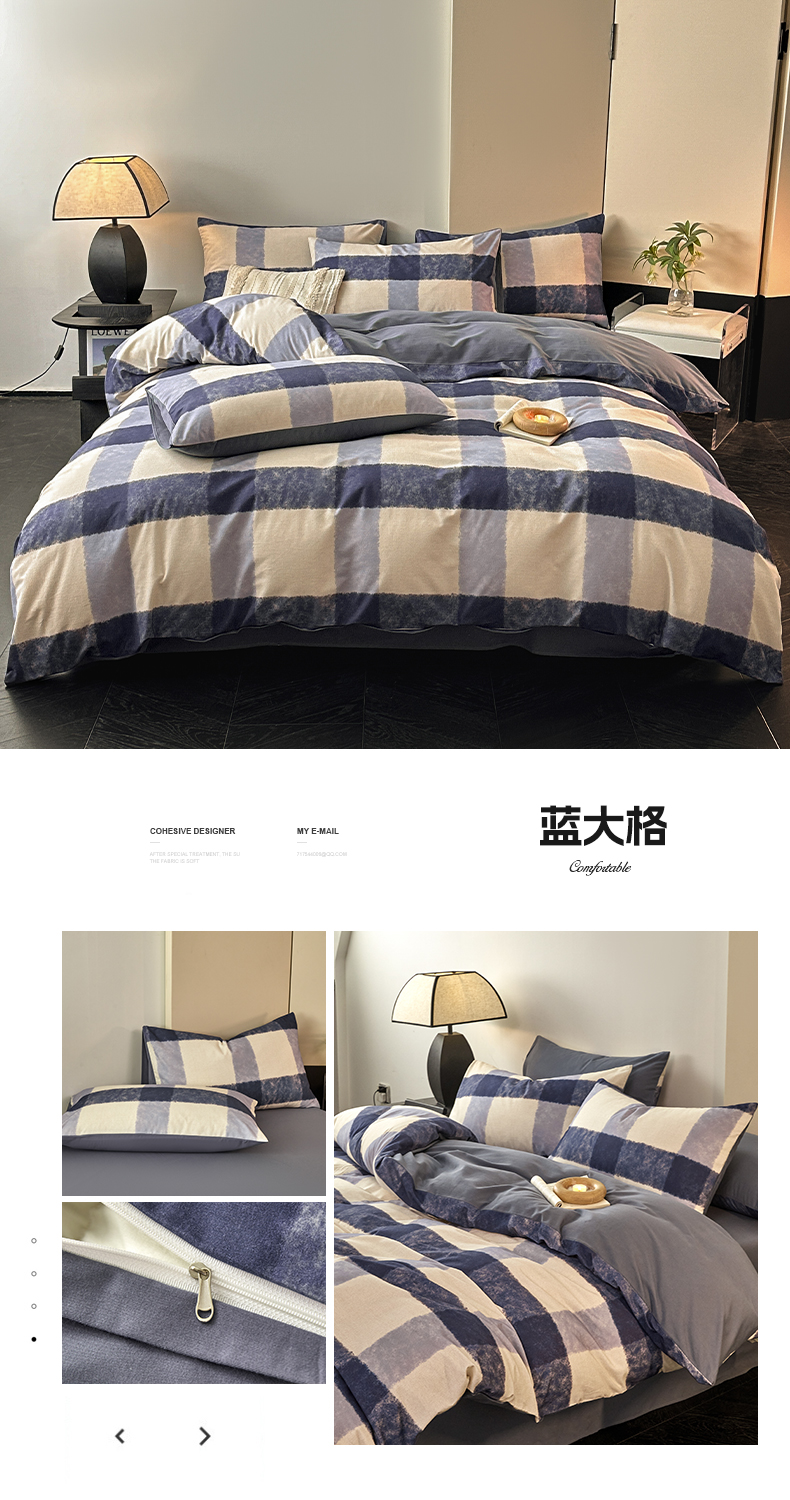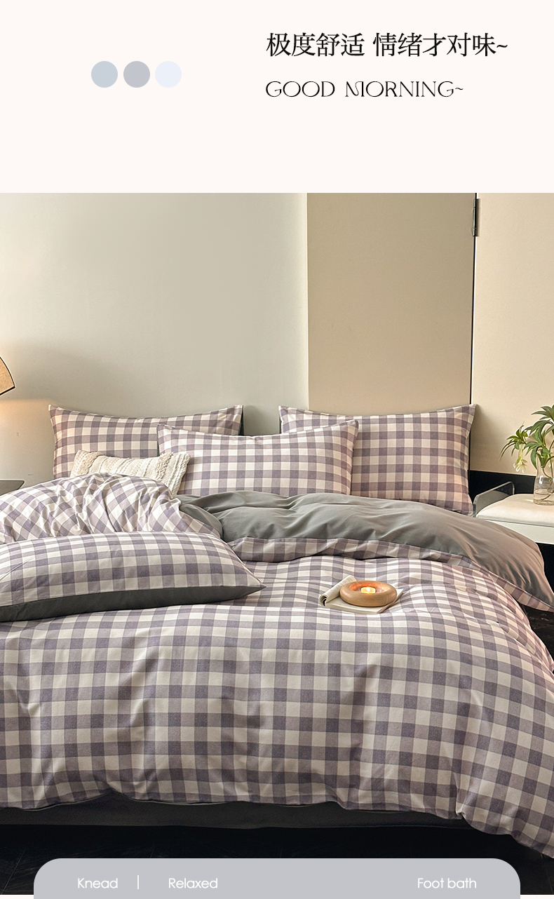 商品名称:雅居纺家纺 2025新款简约款全棉磨毛四件套 小格灰