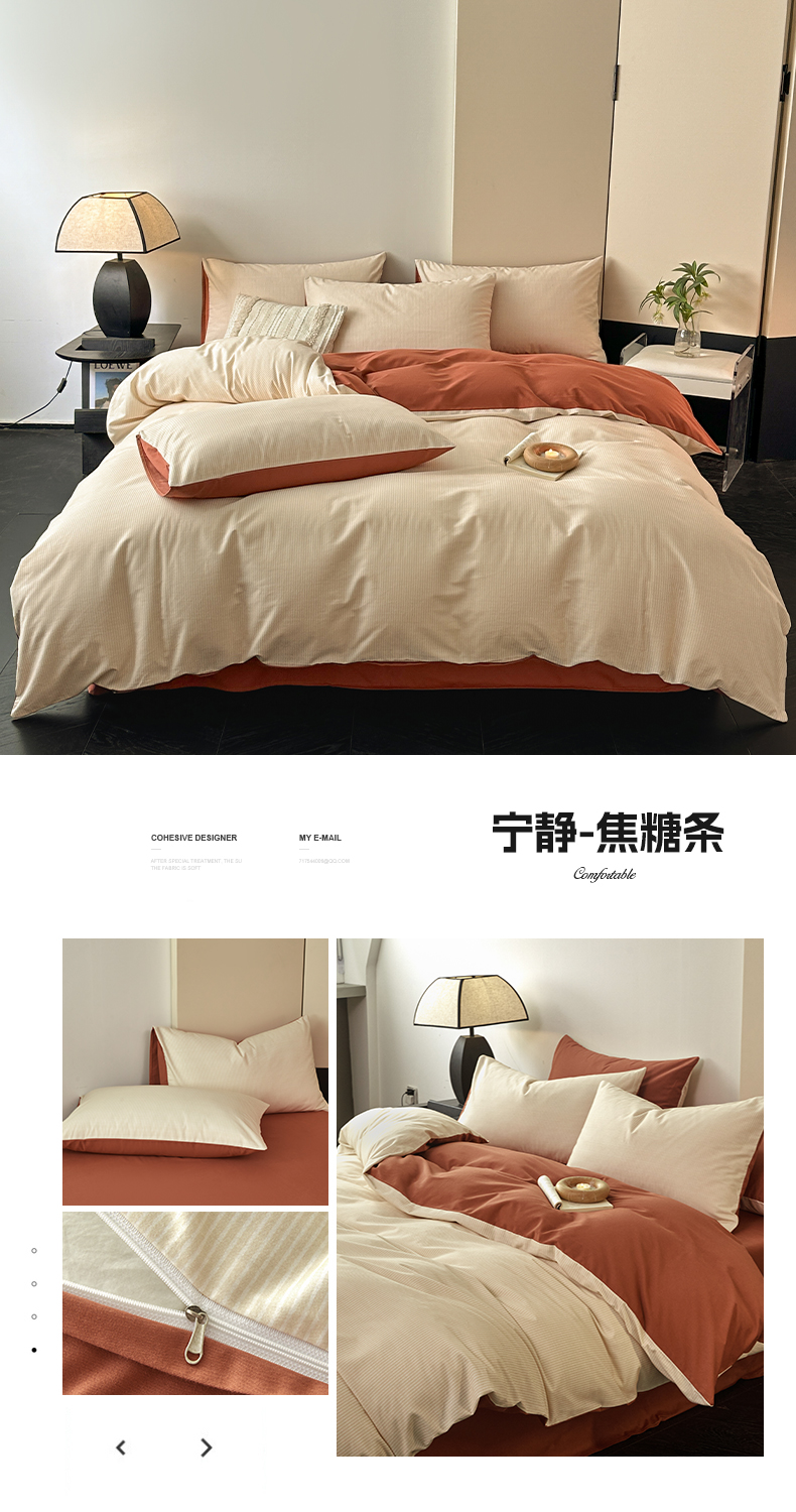 (总)雅居纺家纺 2022新款全棉华夫格普通款四件套,焦糖,米驼,奶油白,柔粉,深灰,雾蓝,月灰
