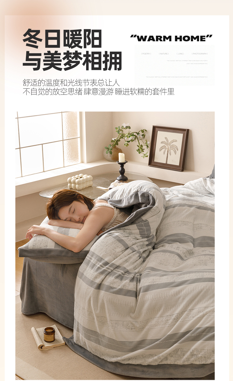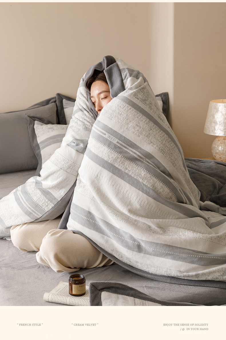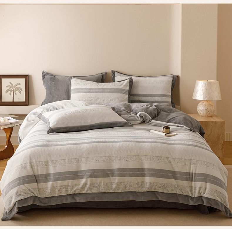 当前位置: 91家纺网 > 商品网购 > 床品套件 > 四件套 > 牛奶绒四件套 > 恬思语家纺 2025新款亲肤舒适无印风宽边立体烂花牛奶绒四件套 简约人生-灰