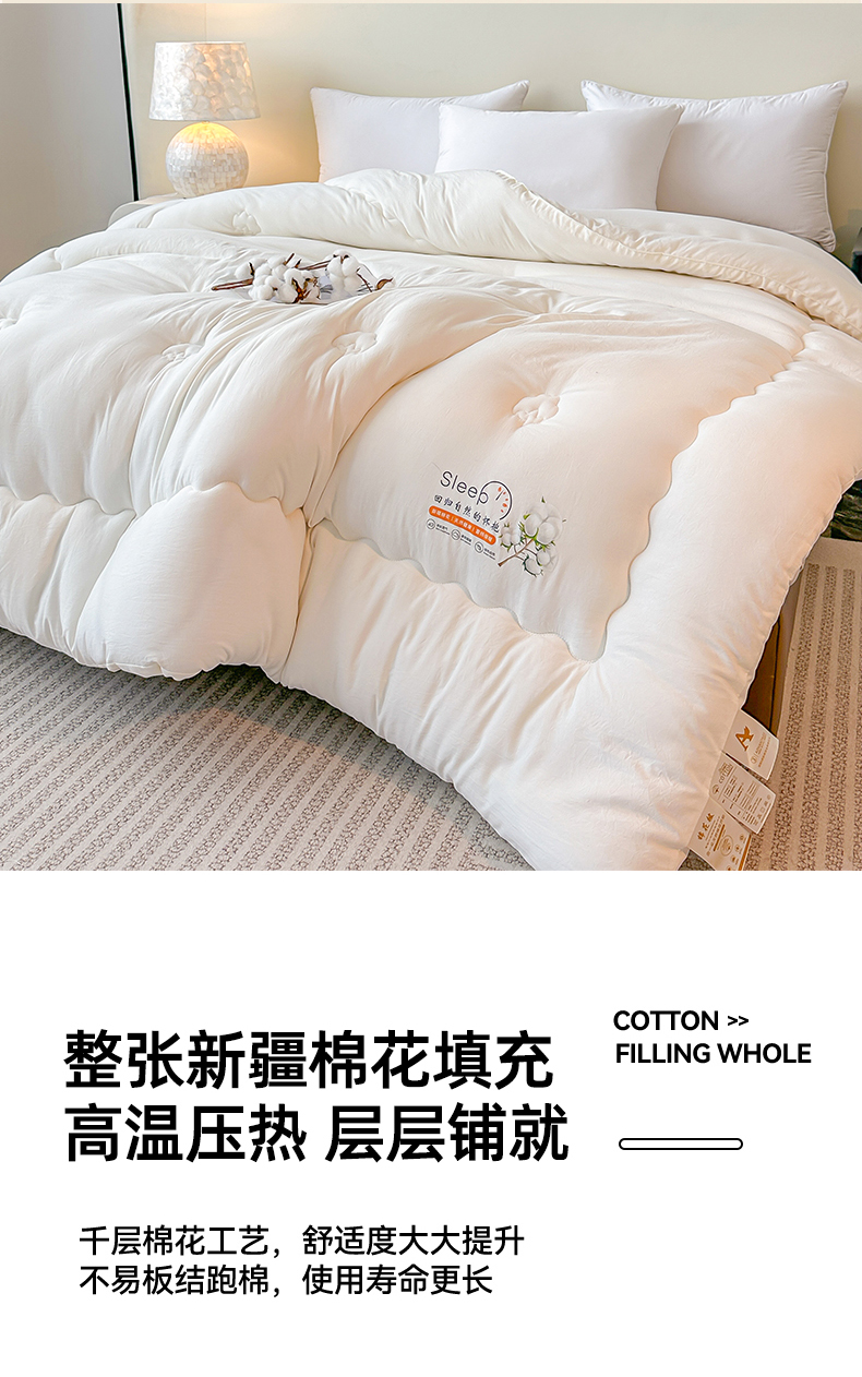 • 91家纺网 家纺一手货源 找家纺 好欣怡家纺 2026新款A类水洗棉新疆棉花冬被被子被芯棉花被直播 黛粉