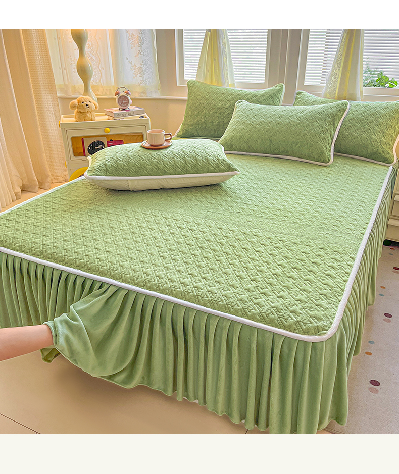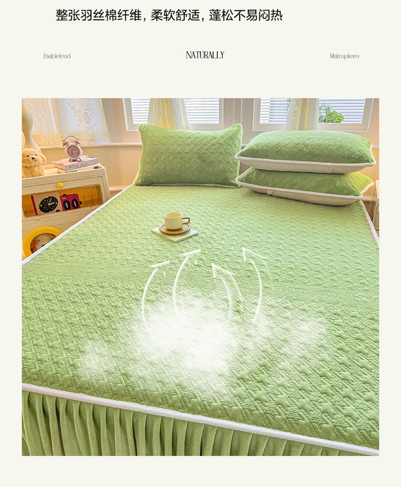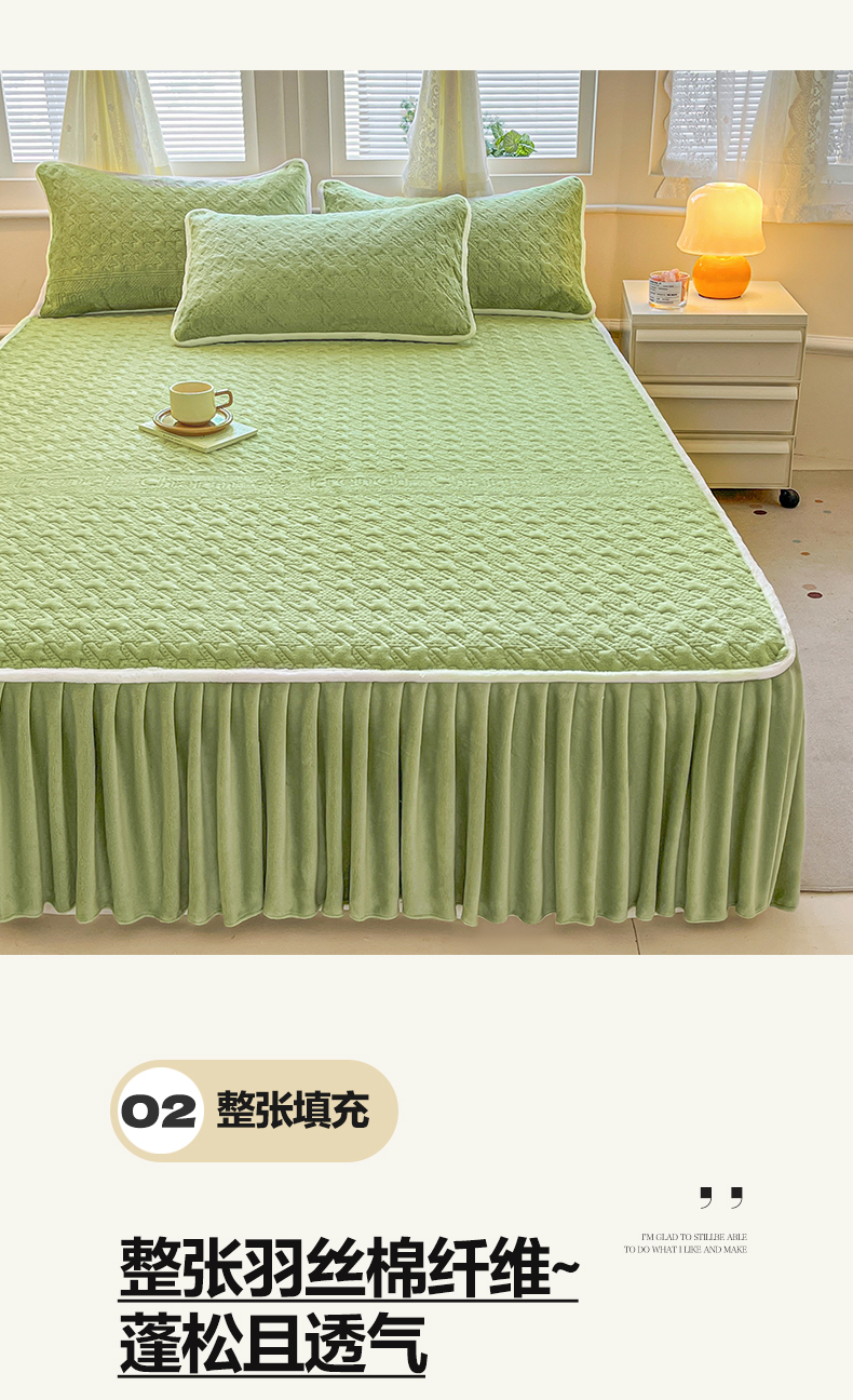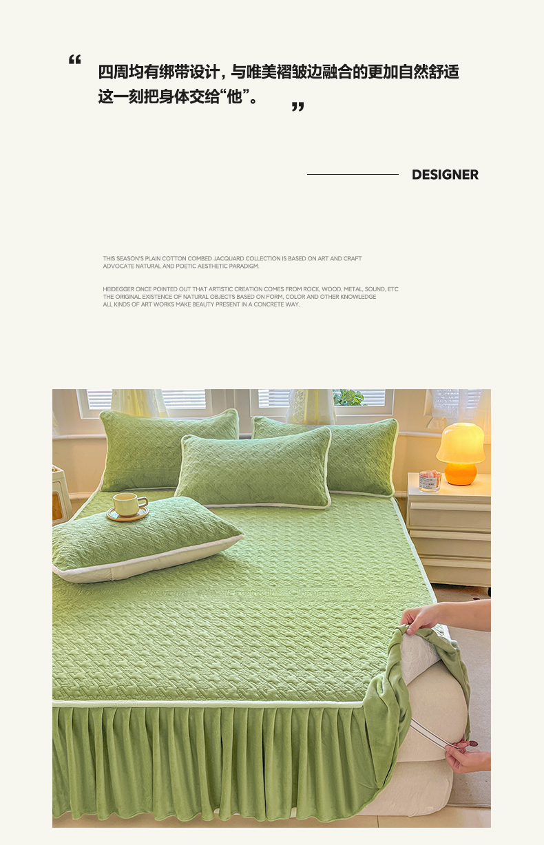 卡伦家纺 2025新款抗菌雕花牛奶绒千鸟格夹棉床裙系列 千鸟格床笠-绿