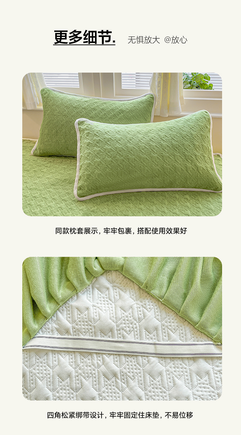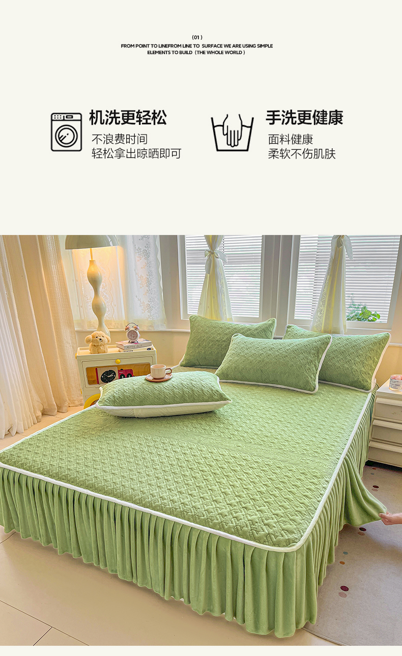 • 91家纺网 家纺一手货源 找家纺 卡伦家纺 2025新款抗菌雕花牛奶绒千鸟格夹棉床裙系列 千鸟格床笠-绿