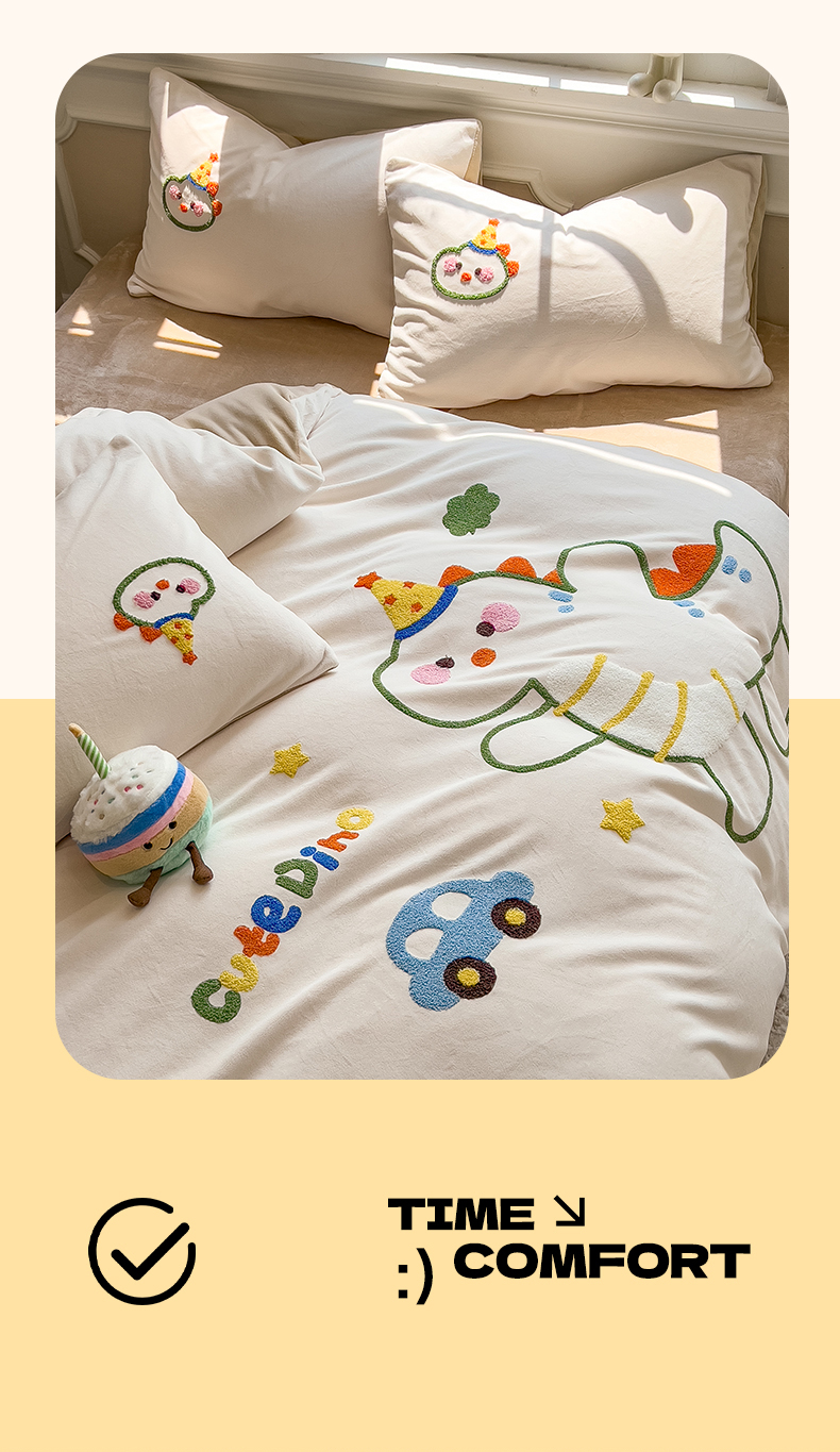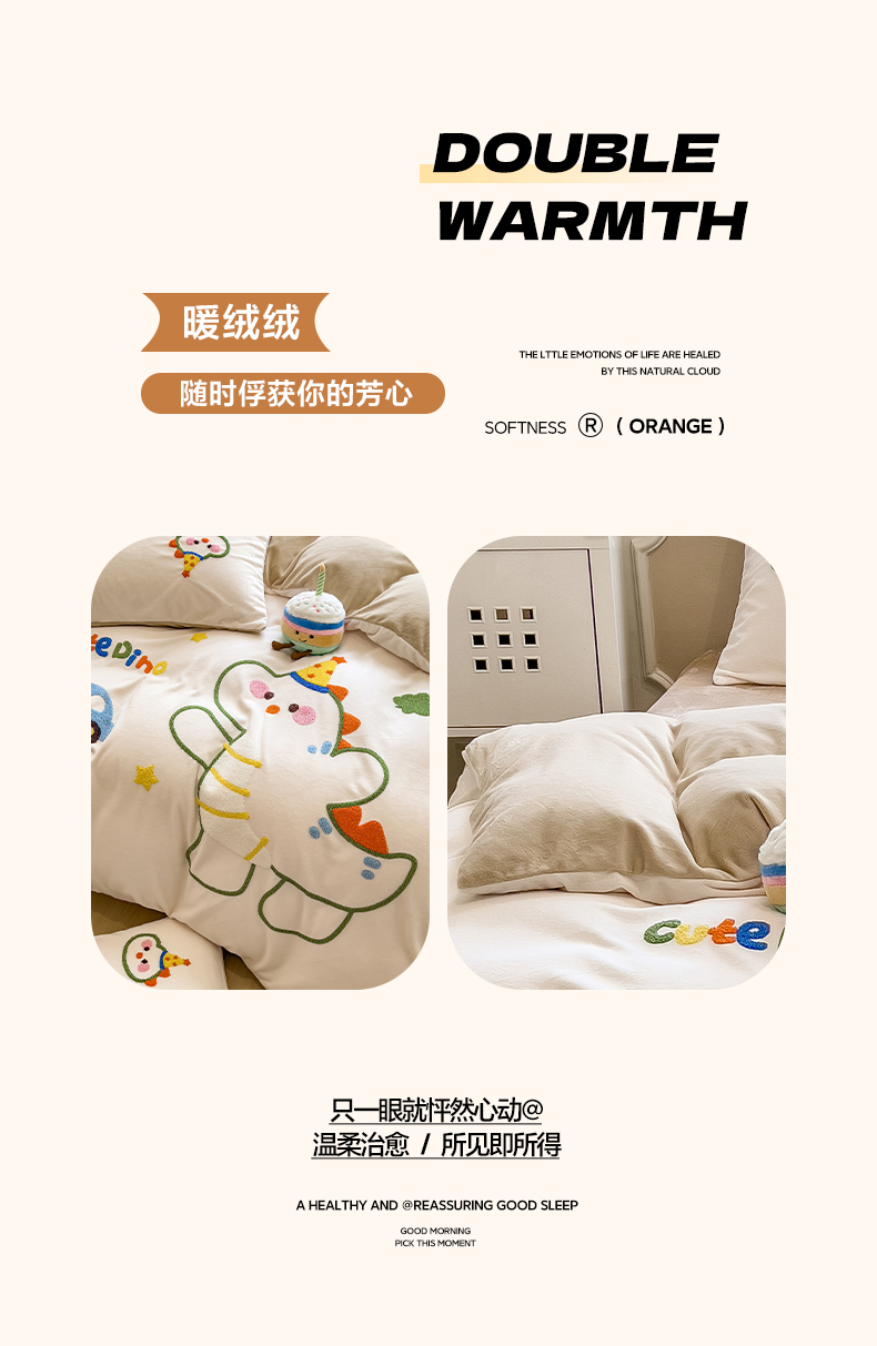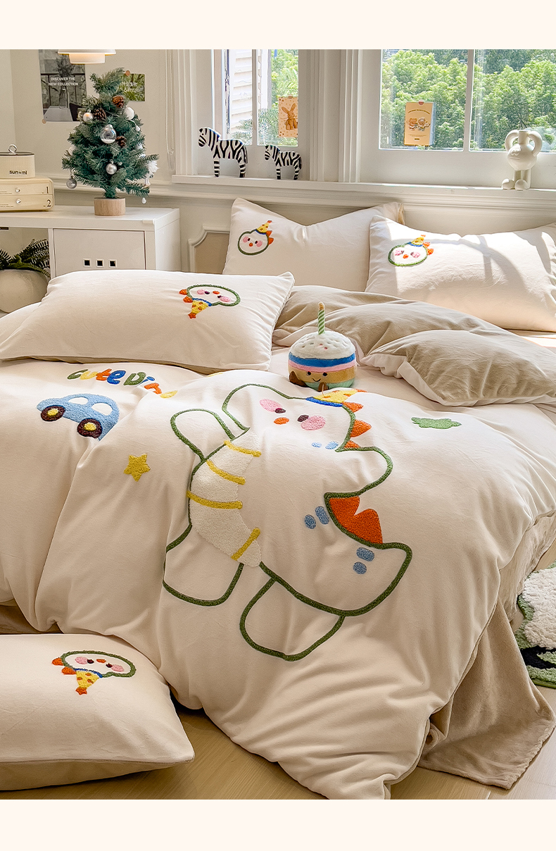 当前位置: 91家纺网 > 商品网购 > 床品套件 > 四件套 > 牛奶绒四件套 > 悦织语 2025新款加厚200克高克重毛巾绣牛奶绒四件套 派对恐龙-米白