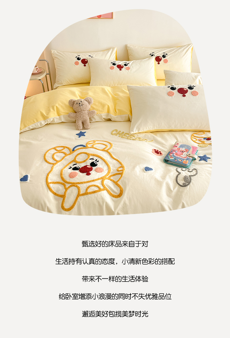 (总)琪格格 2025新款全棉纯棉大版卡通毛巾绣四件套,调皮芝士 米白配奶黄,调皮芝士奶黄,森林熊猫,心愿小树米白配奶绿, 熊猫爬树,小熊生日派对 米白配奶黄,小熊生日派对 米白配奶咖