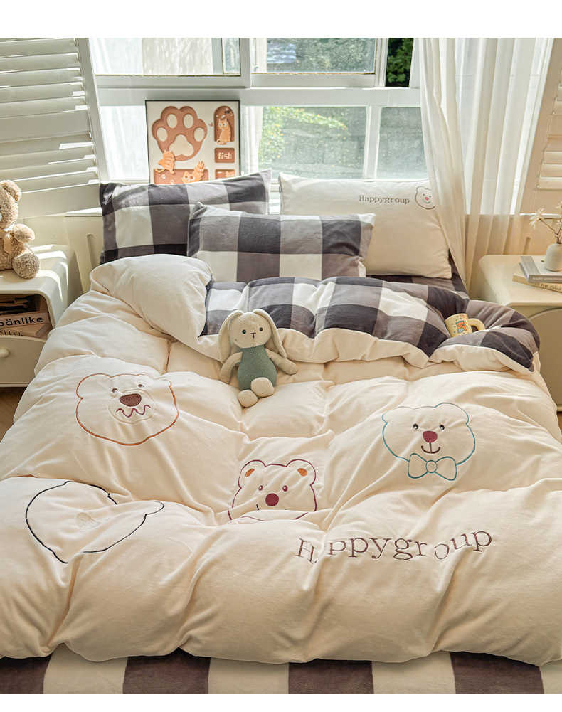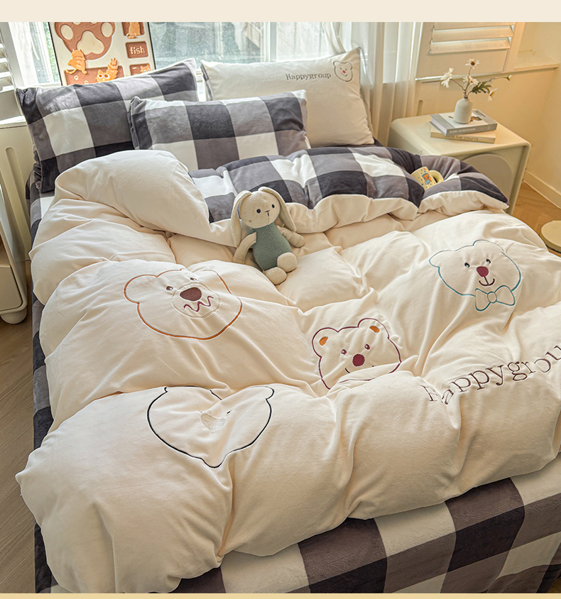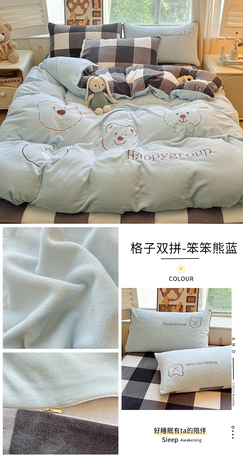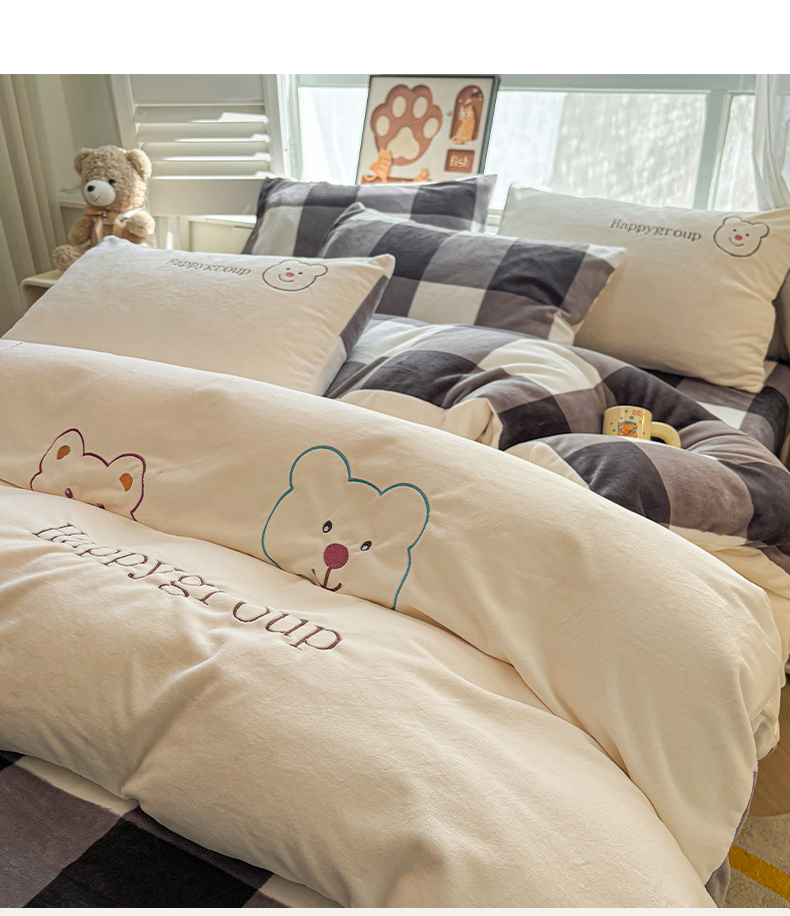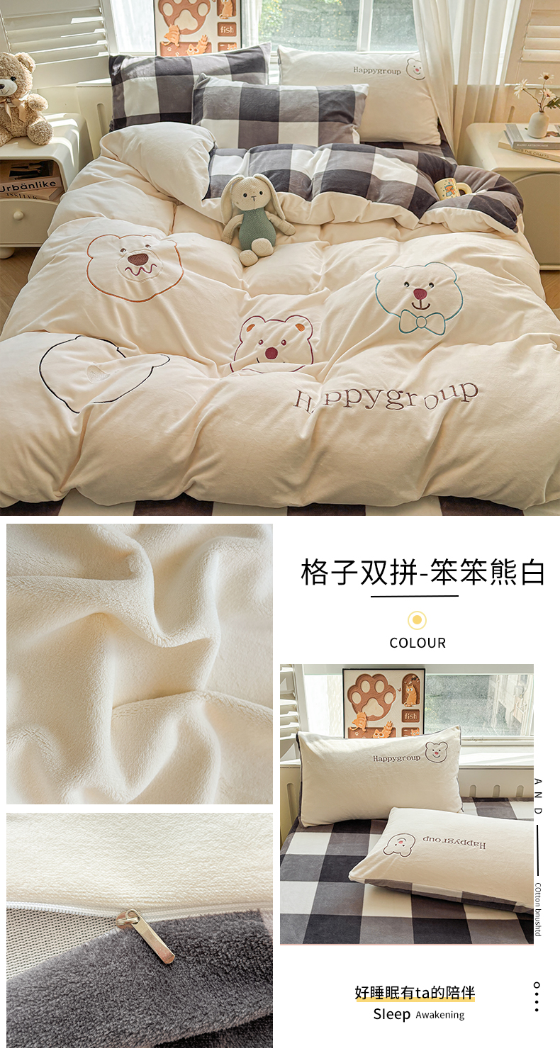 当前位置: 91家纺网 > 商品网购 > 床品套件 > 四件套 > 牛奶绒四件套 > 悦织语 2025秋冬新品200克加厚牛奶绒刺绣无印风格子双拼印绣四件套 格子双拼-笨笨熊白