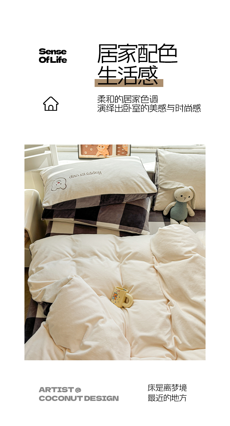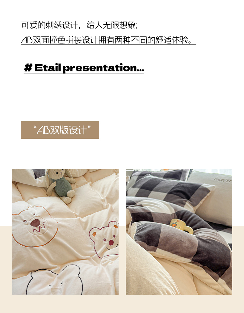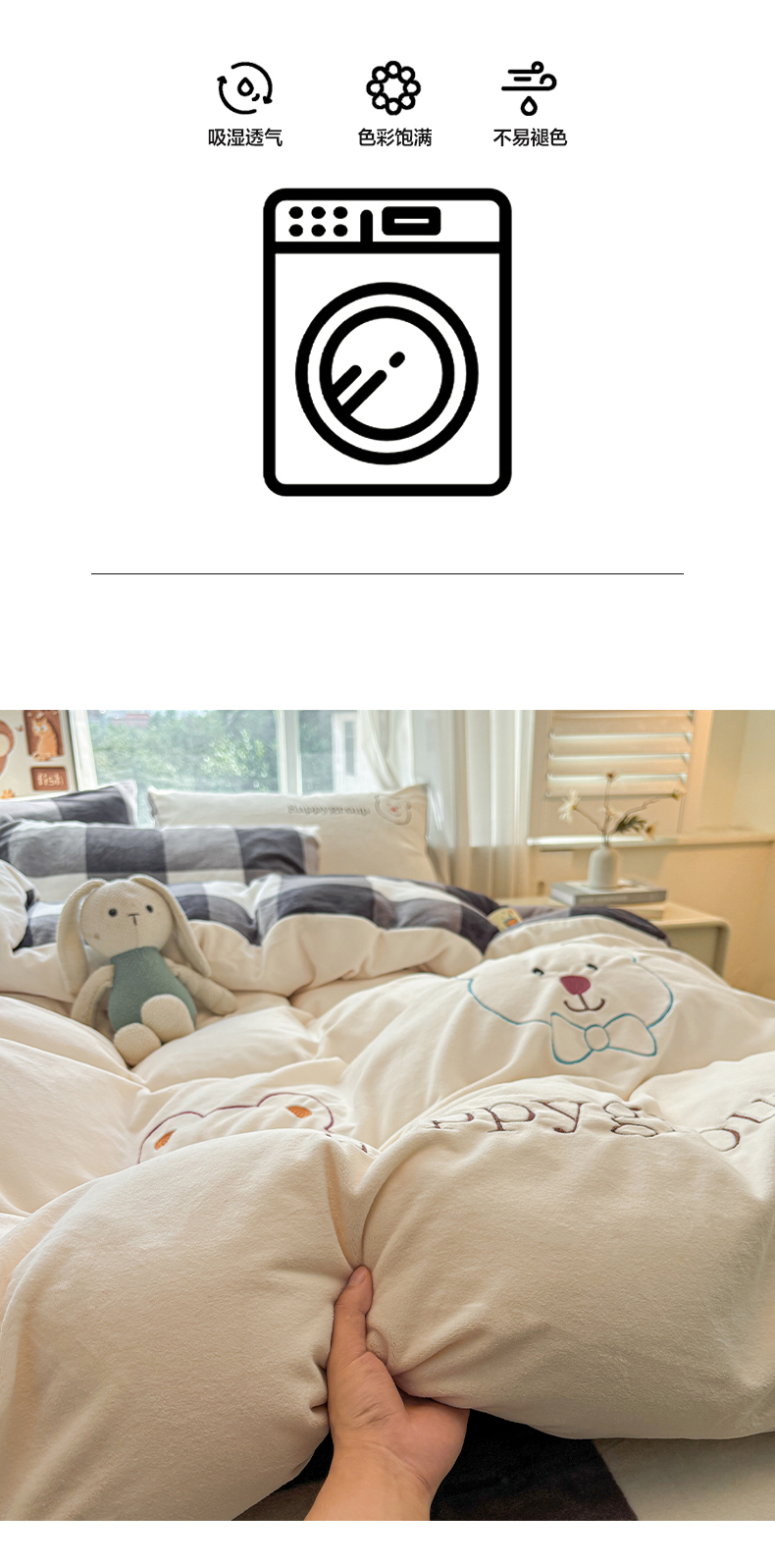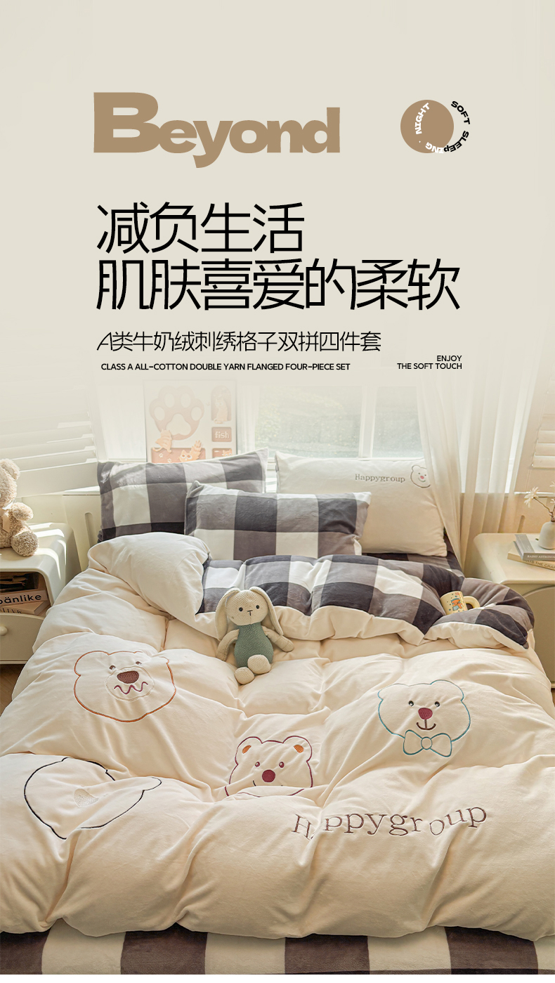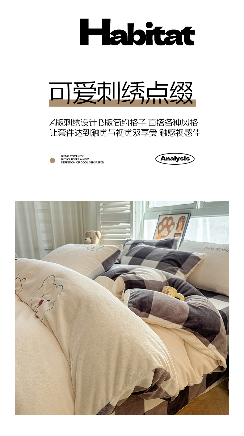 当前位置: 91家纺网 > 商品网购 > 床品套件 > 四件套 > 牛奶绒四件套 > 悦织语 2025秋冬新品200克加厚牛奶绒刺绣无印风格子双拼印绣四件套 格子双拼-笨笨熊白