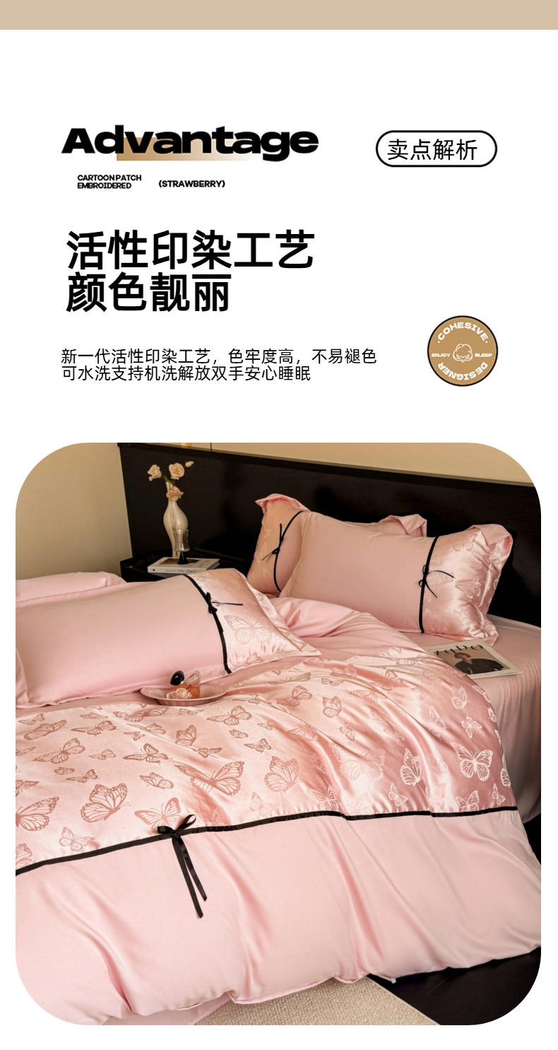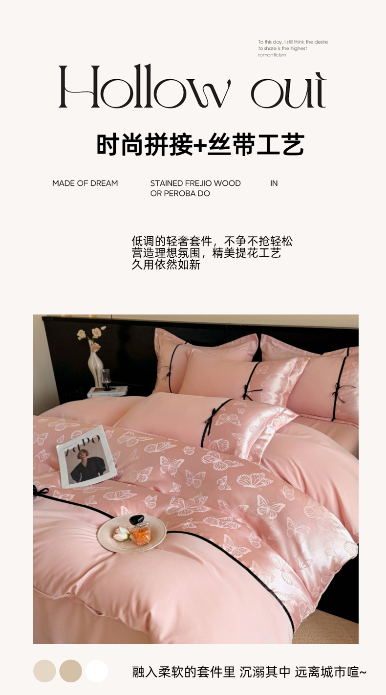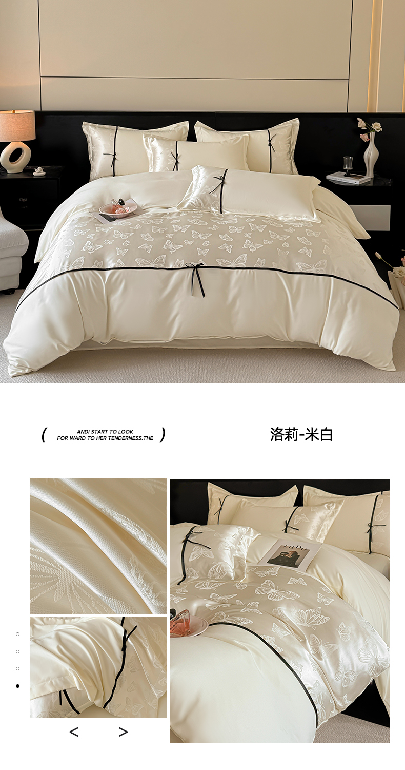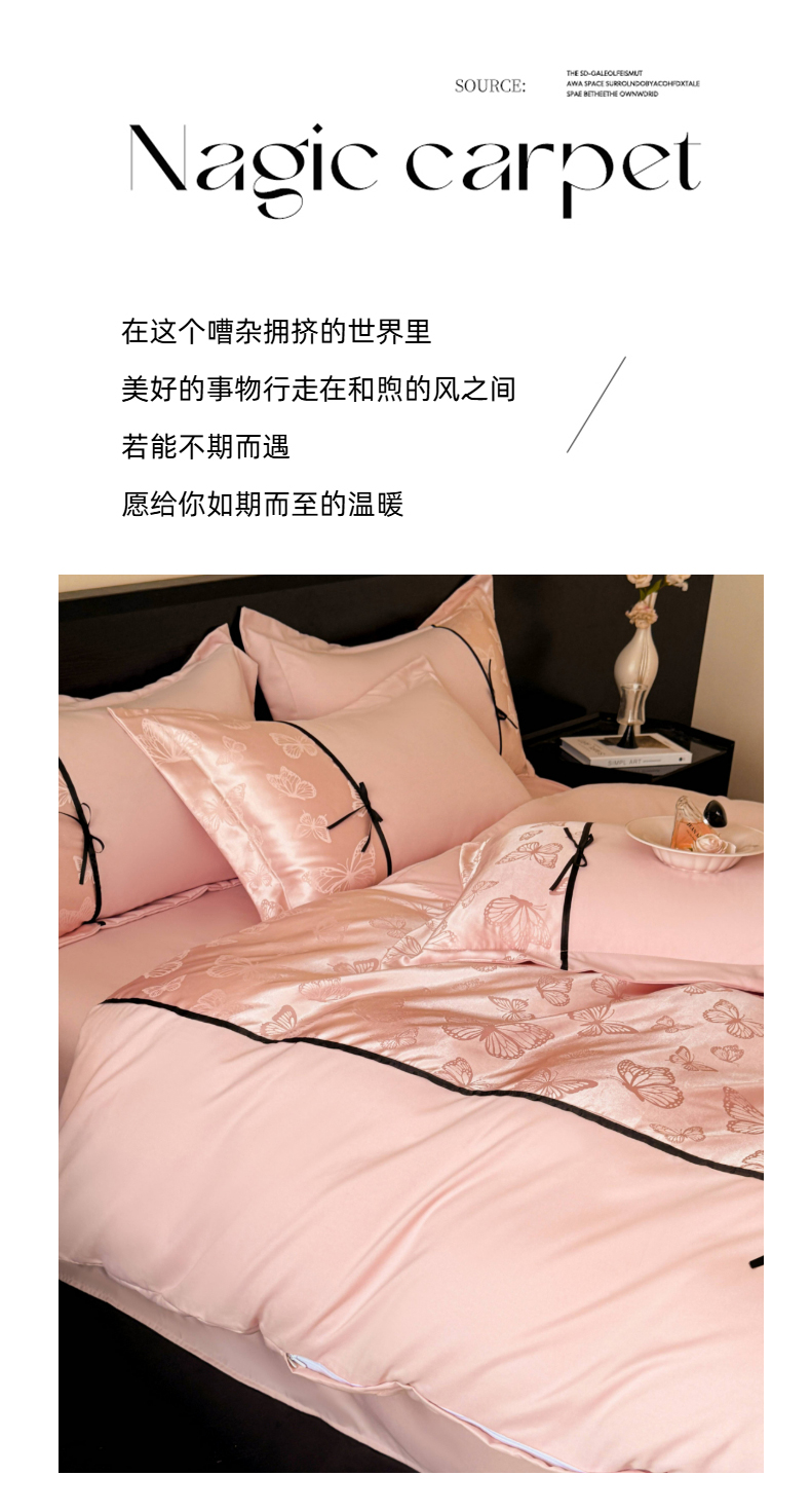 (总)千希家纺 2025新款麻绳拼接120g斜纹磨毛提花婚庆系列四件套,蝶恋花,竹恋,竹影清梦