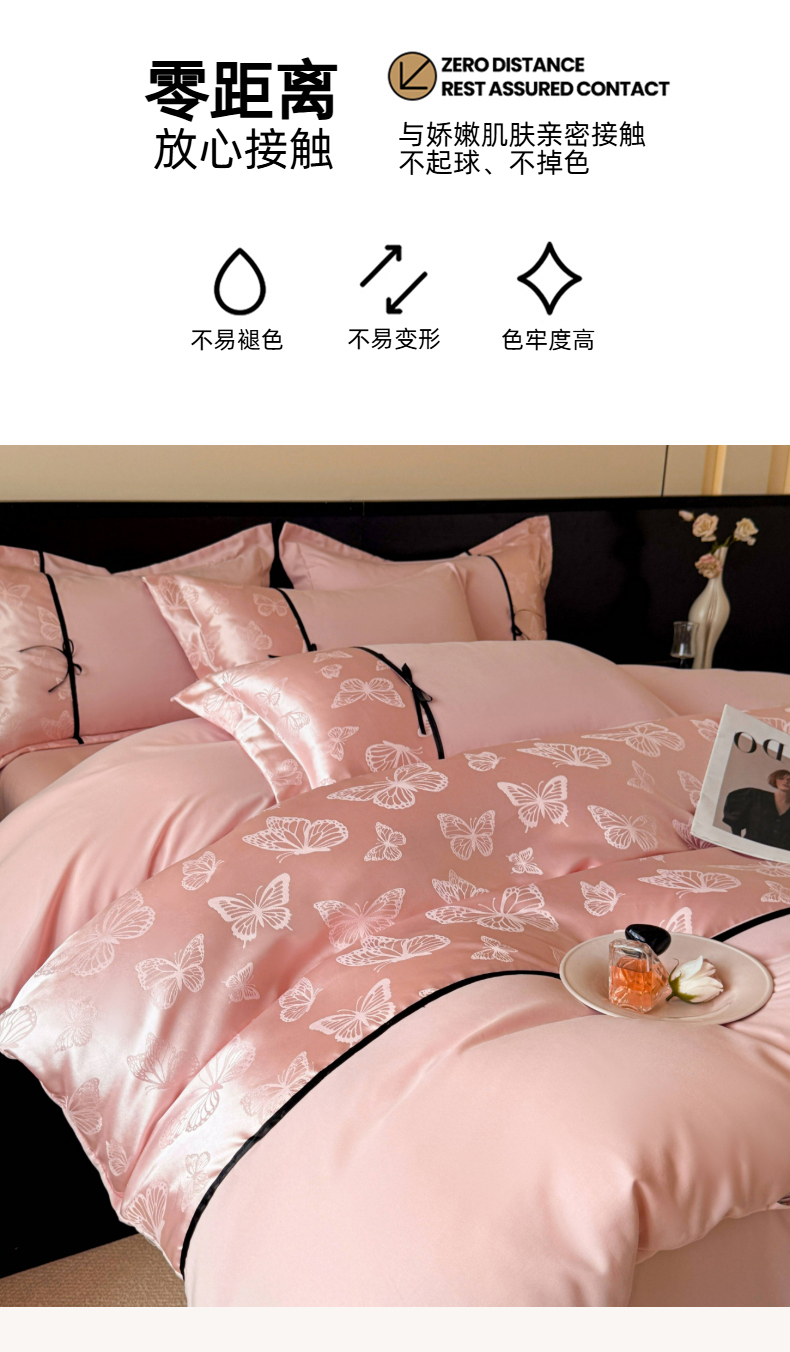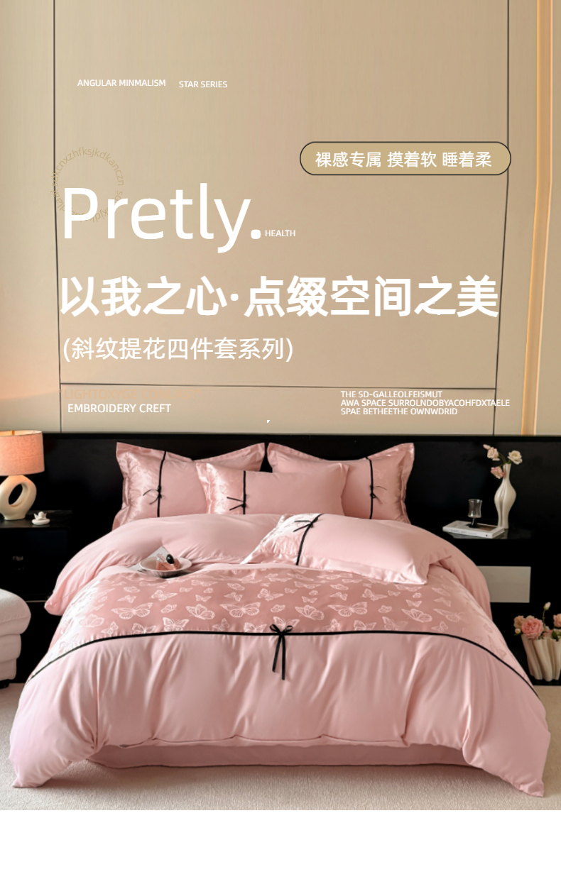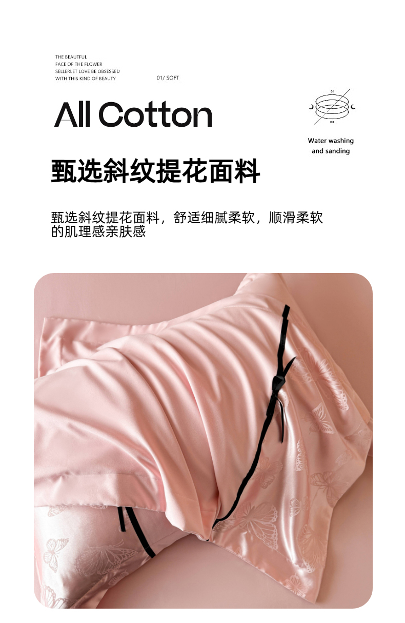 千希家纺 2025新款斜纹亲肤棉提花四件套-洛莉系列(提供买家秀) 洛莉-蜜桃粉