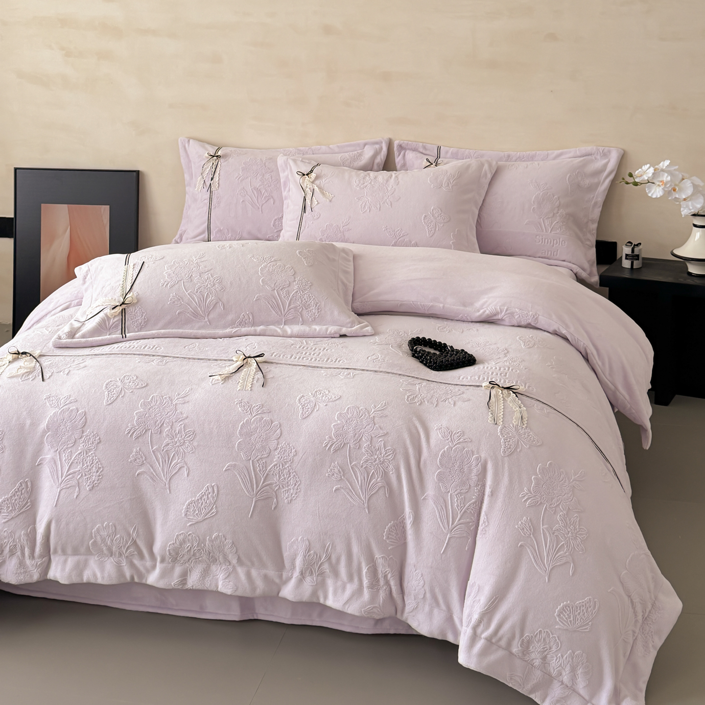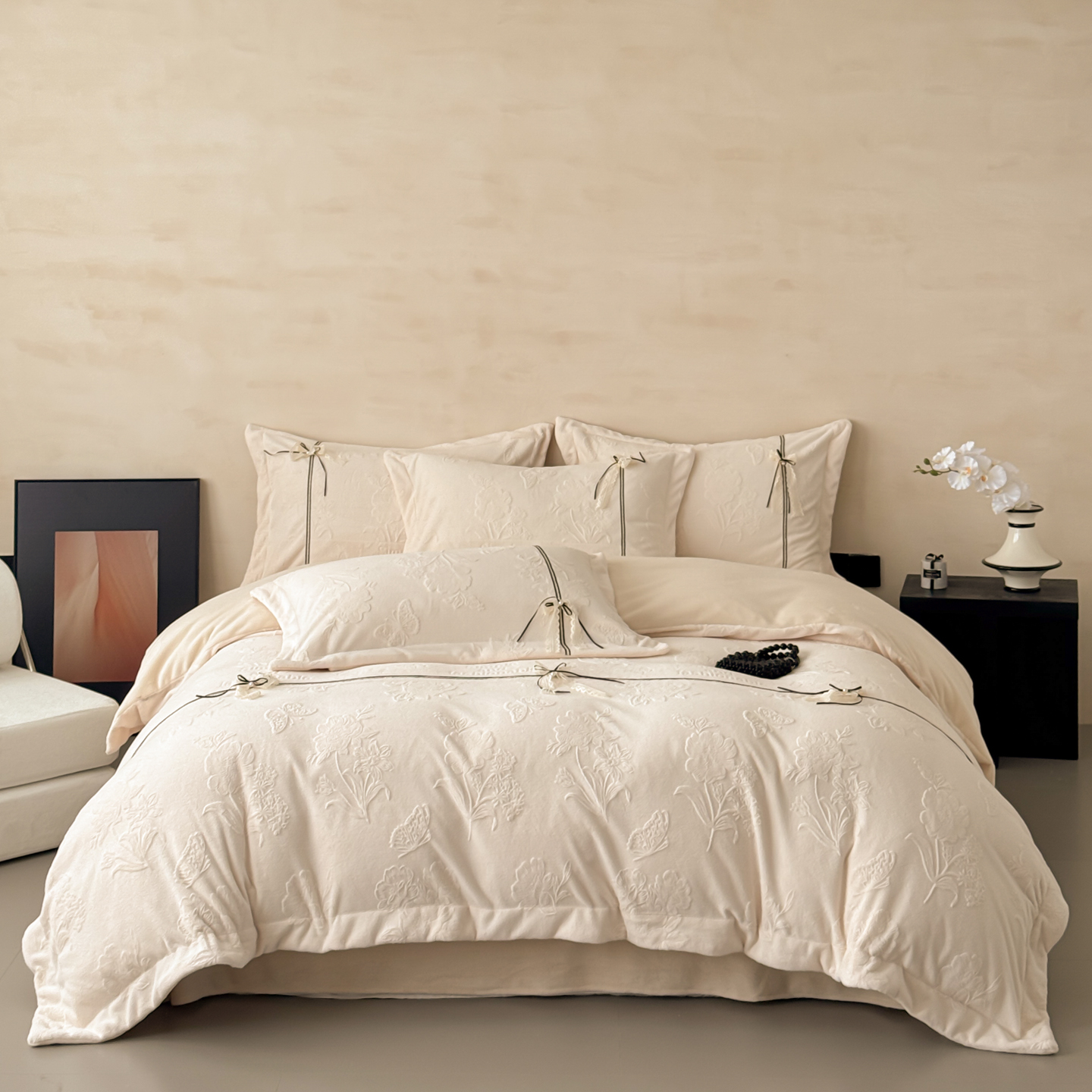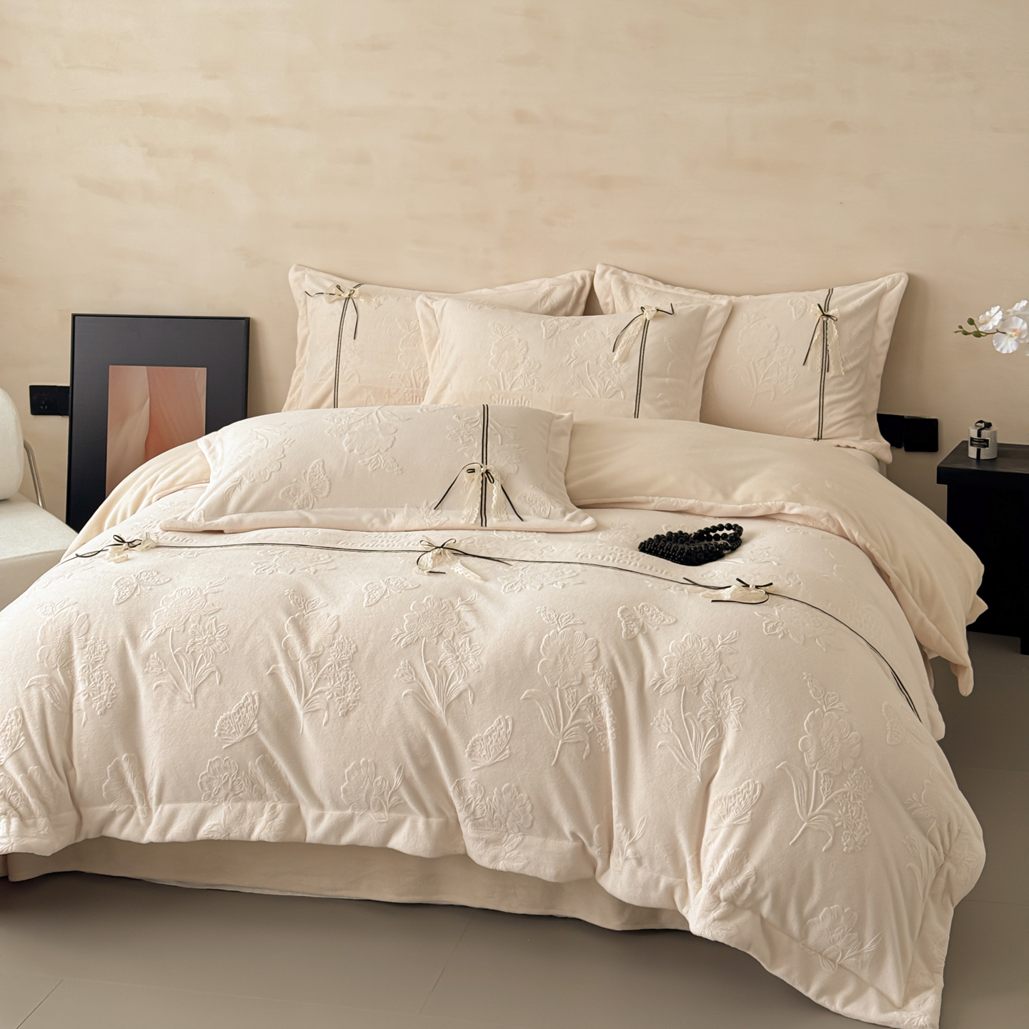 商品名称:若未家居 LOVEWE HOUSE 2025新款250克法式轻奢牛奶绒雕花工艺款四件套-蝶屿 蝶屿 奶油白