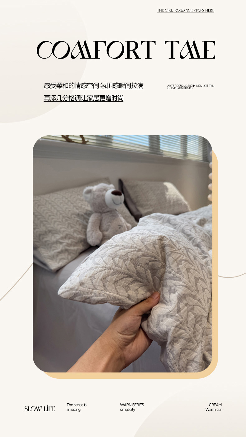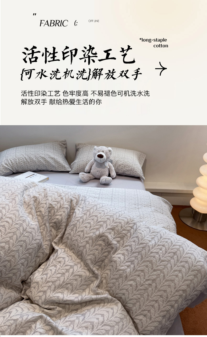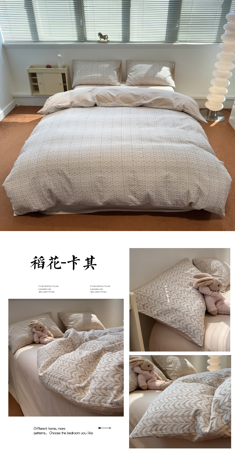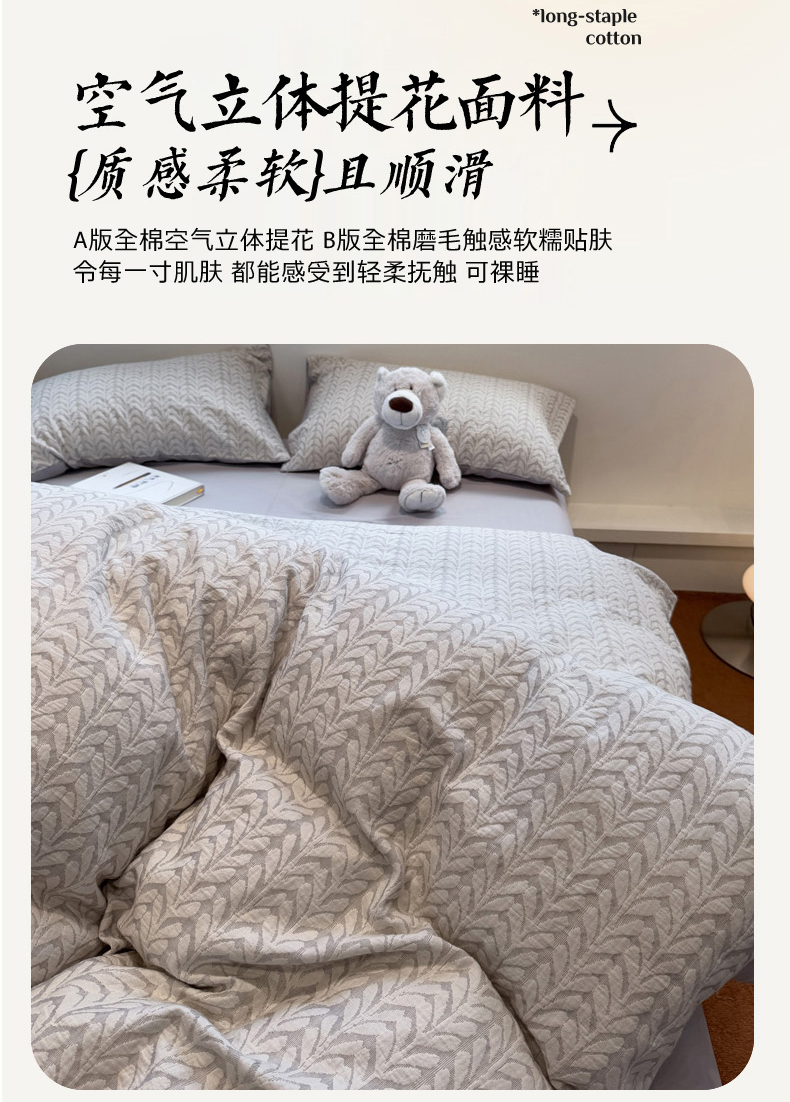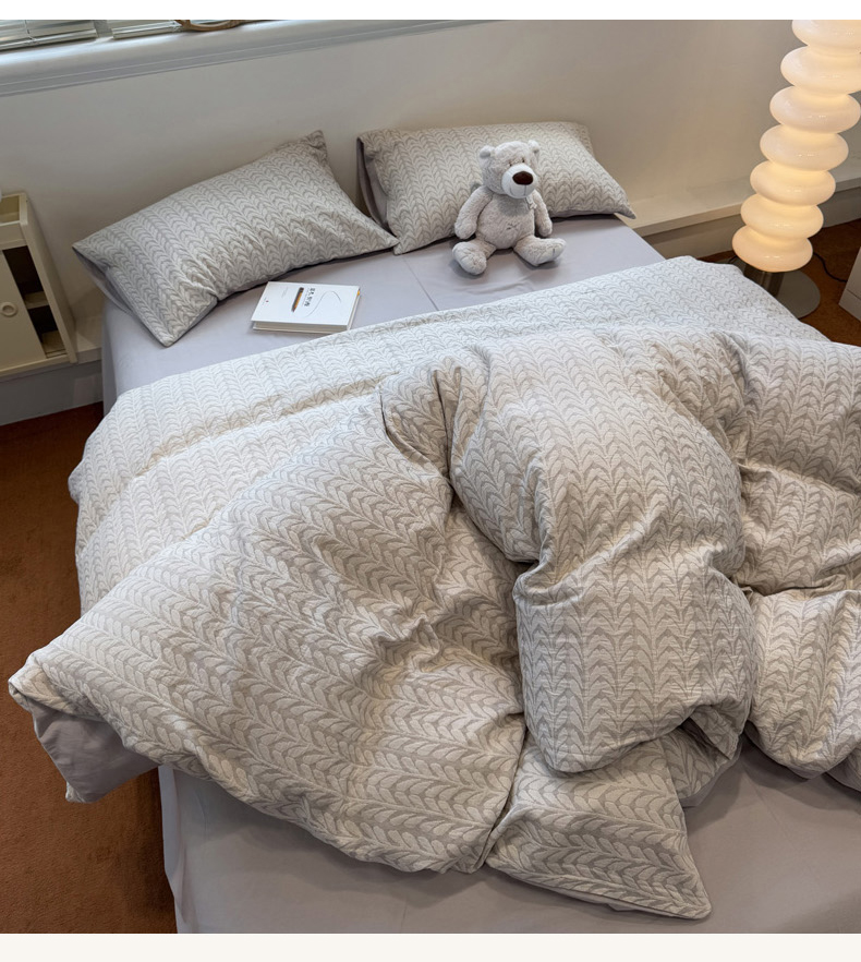 当前位置: 91家纺网 > 商品网购 > 床品套件 > 四件套 > 普通磨毛四件套 > 慕尚家纺 2025新款全棉空气立体提花磨毛四件套 稻花-白灰