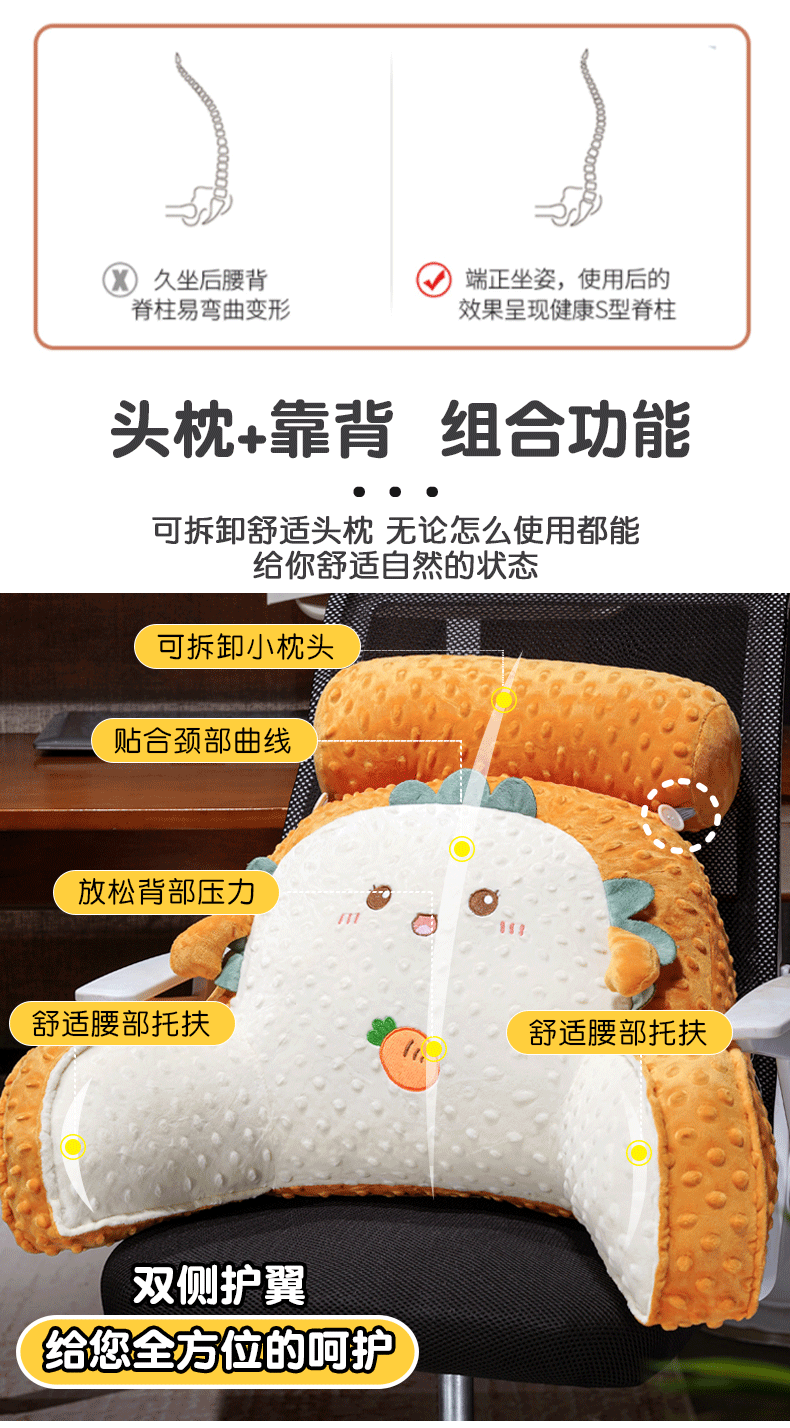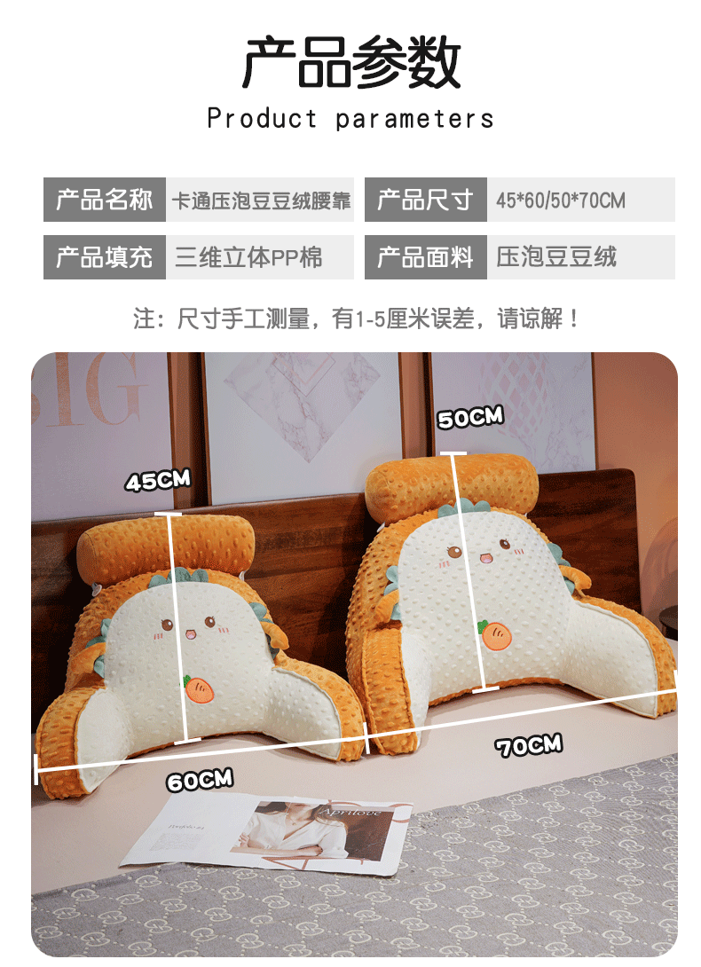 商品名称:仟亿莱 2025新款卡通压泡豆豆绒拥抱式腰靠 拥抱豆豆吐司