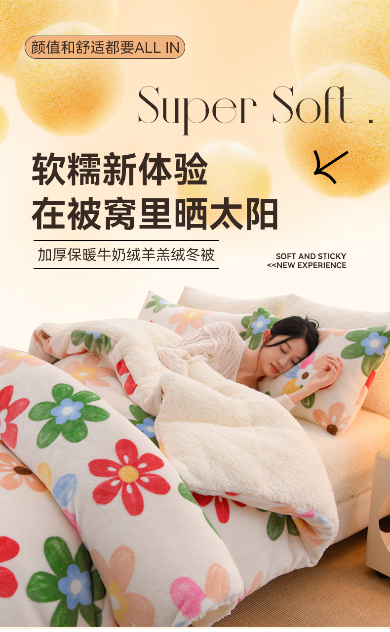 (总)圣楚家纺 2025秋冬新款亲肤舒适暖心羊羔绒牛奶绒AB面冬被被子被芯