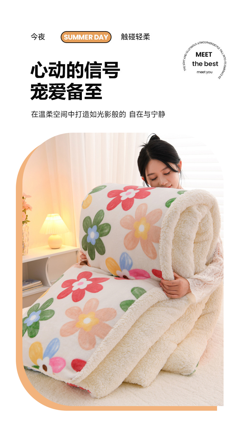 商品名称:(总)圣楚家纺 2025秋冬新款亲肤舒适暖心羊羔绒牛奶绒AB面冬被被子被芯