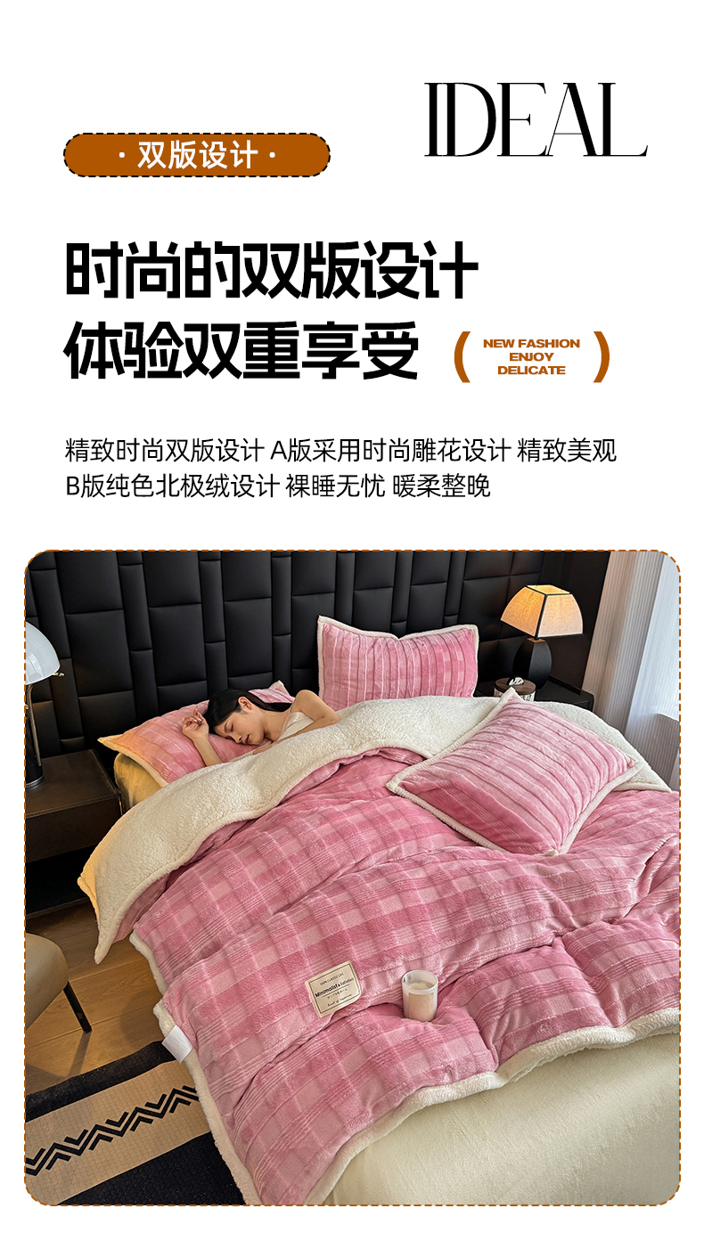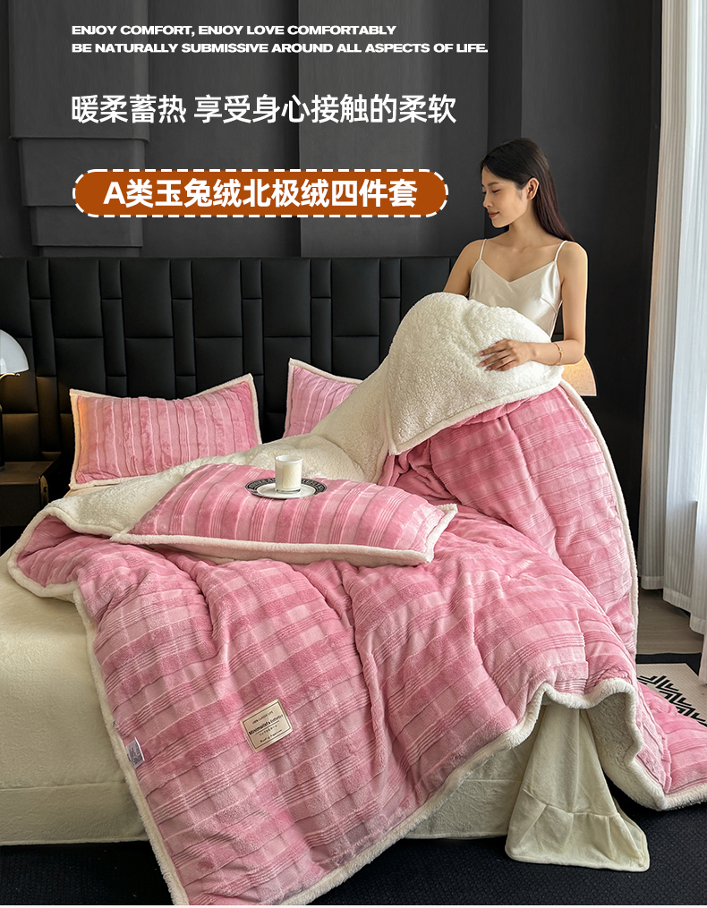 商品名称:青竹苑 2025新款A类玉兔绒北极绒纯色单被套被套单件 玉兔粉【双面加绒】