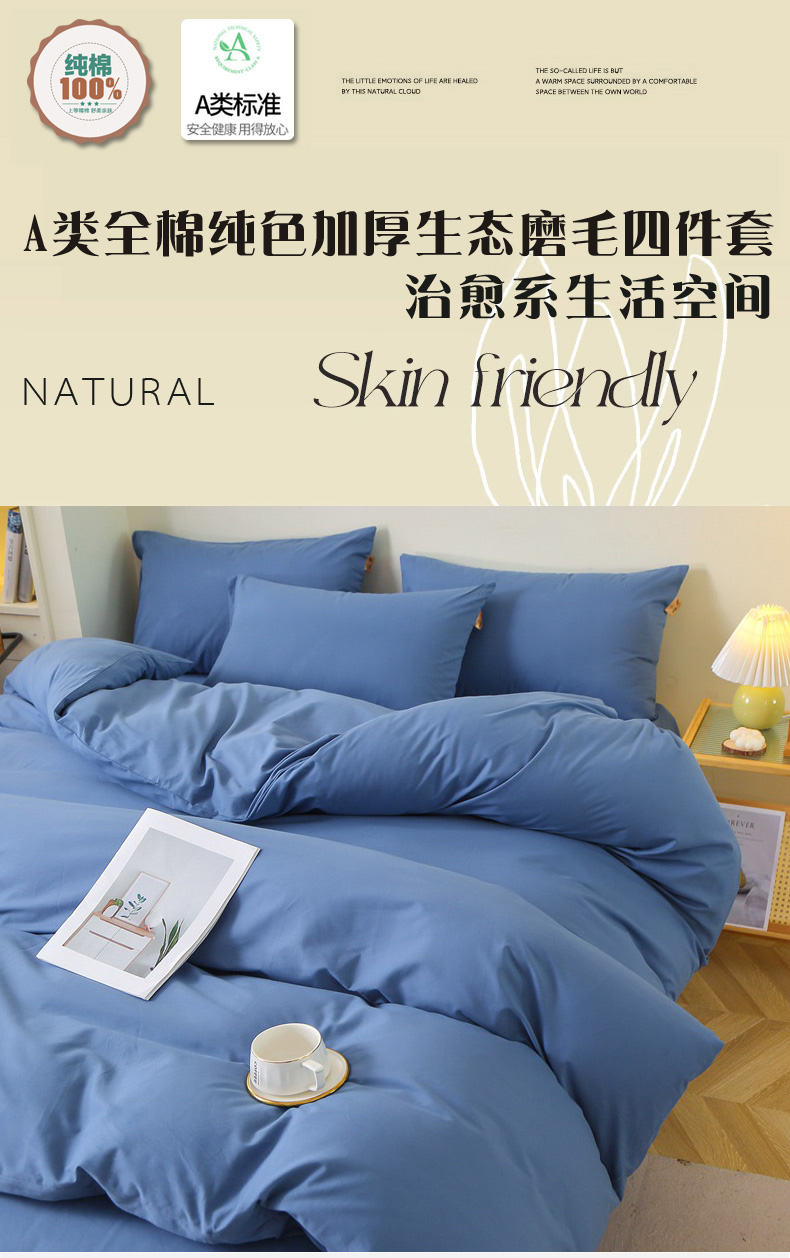 当前位置: 91家纺网 > 商品网购 > 床品套件 > 四件套 > 磨毛活性四件套 > 晶缦 2025新款100%纯棉13376纯色喷气全棉磨毛多规格四件套 暖芸馨-靛青蓝