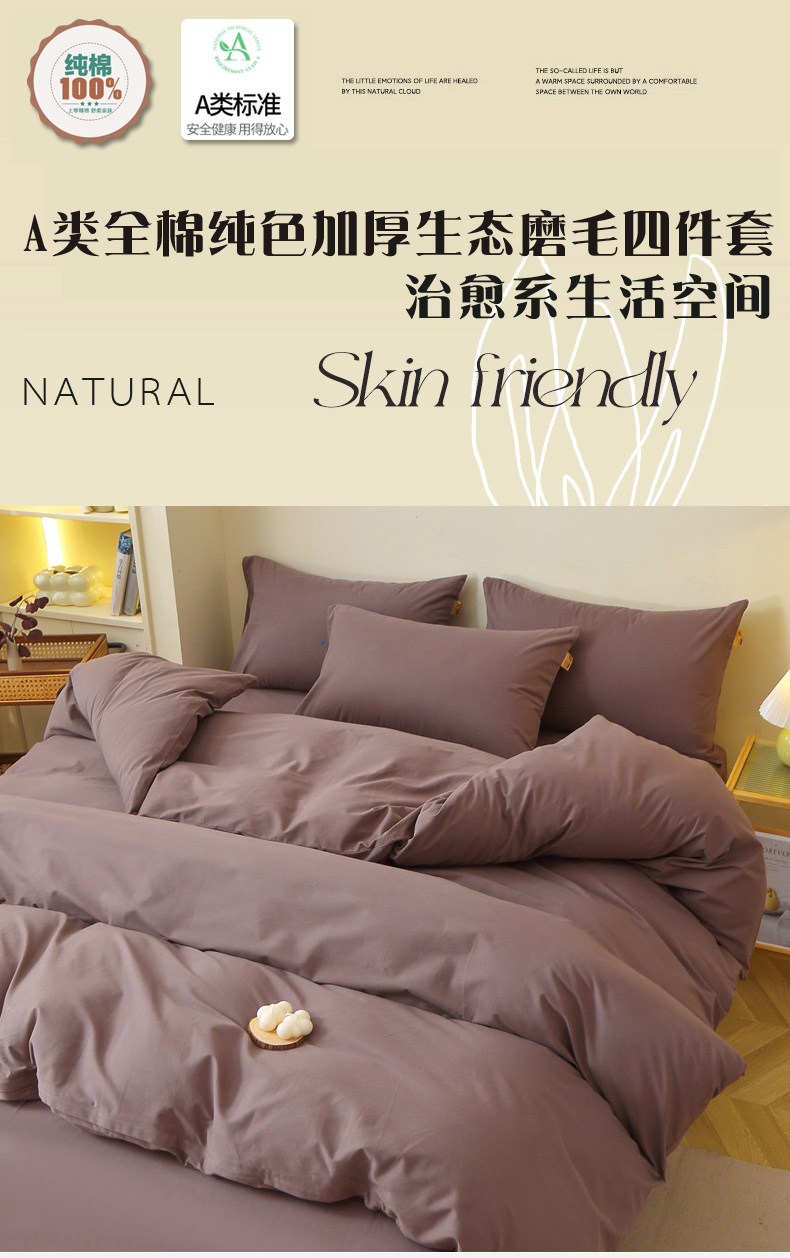 当前位置: 91家纺网 > 商品网购 > 床品套件 > 四件套 > 磨毛活性四件套 > 晶缦 2025新款100%纯棉13376纯色喷气全棉磨毛多规格四件套 暖芸馨-深松棕
