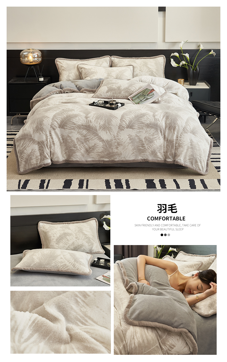 (总)金鹰 2025新款A类雕花牛奶绒烂花兔毛包边四件套,羽毛,波澜壮阔,繁花,蝴蝶梦,简爱,兰花,玫瑰物语,梦幻森林,清晨玫瑰,羽叶,仲夏晨歌