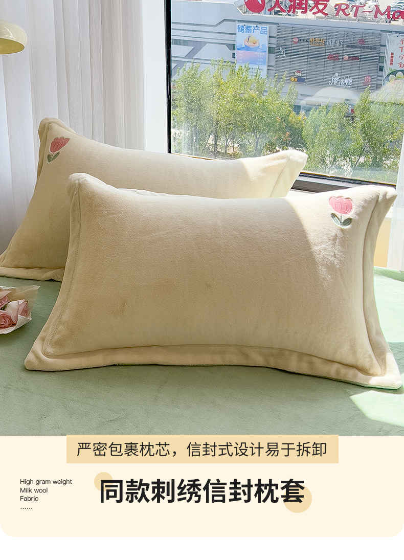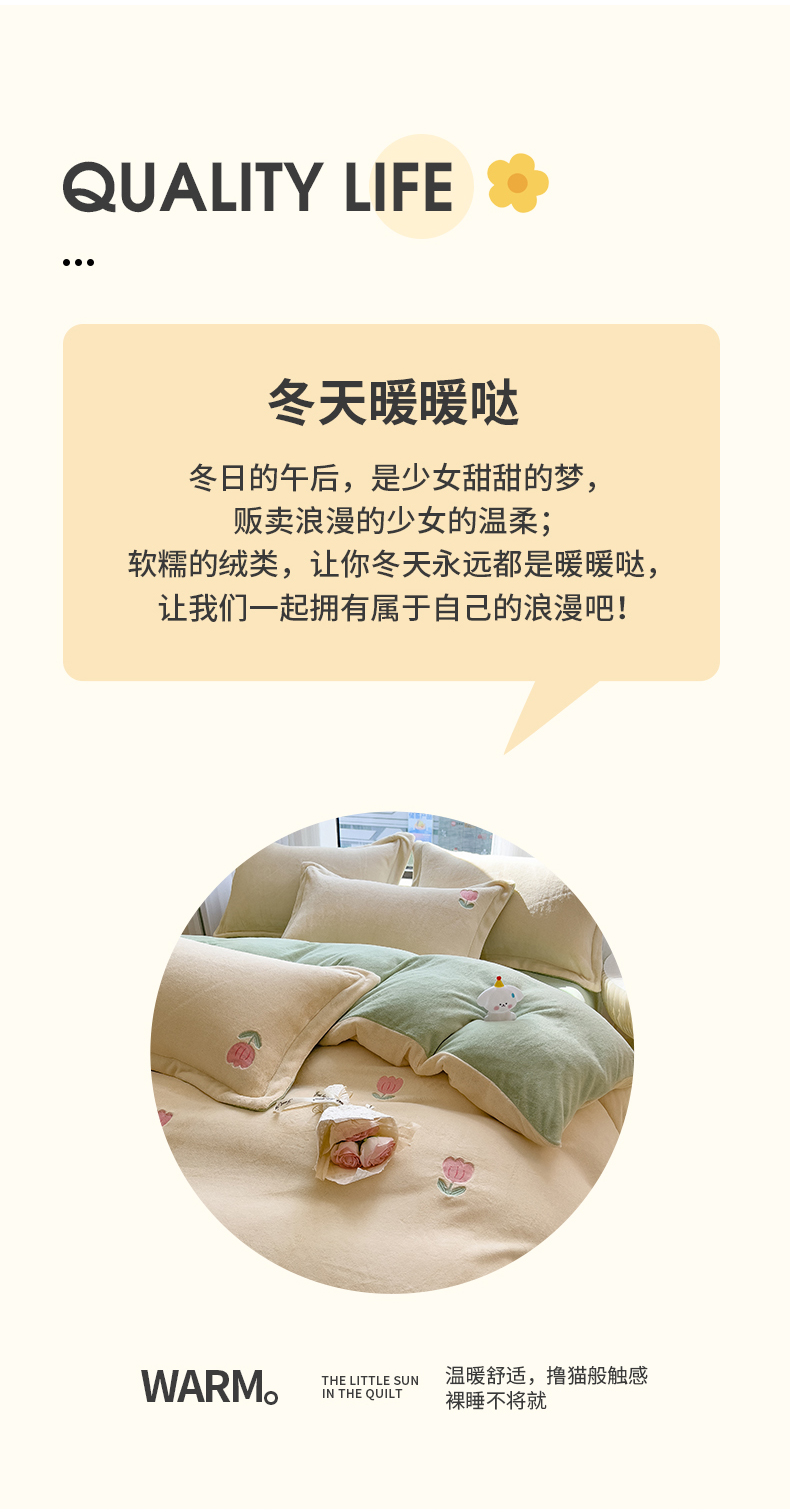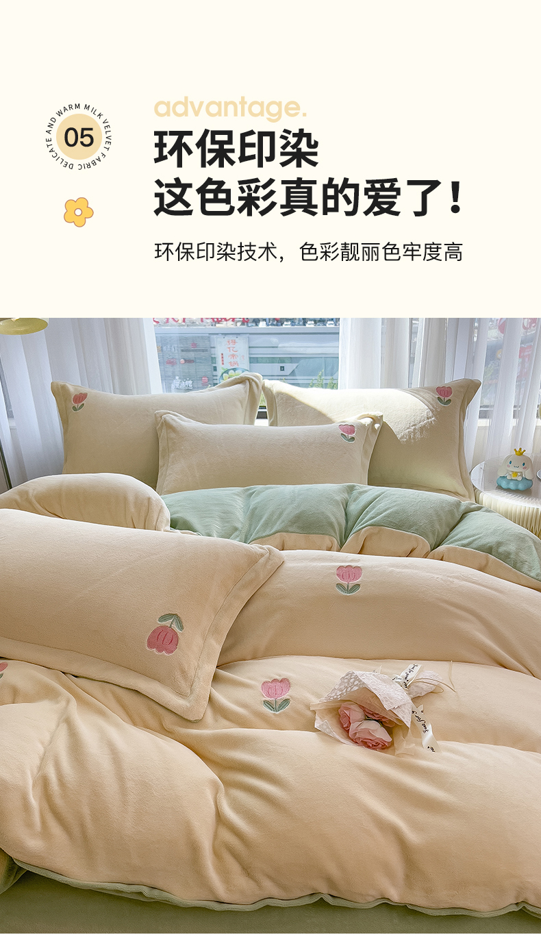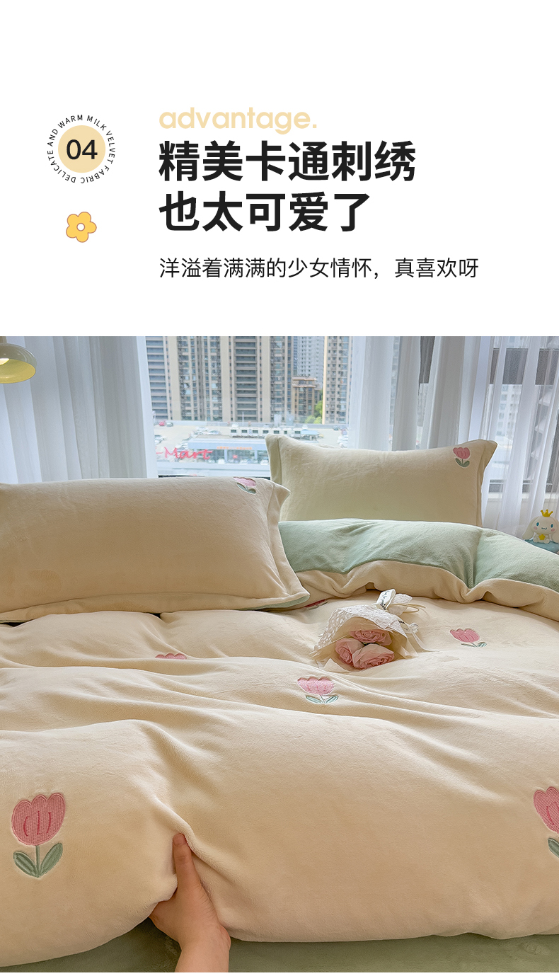 商品名称:丽美人家纺 2025新款牛奶绒卡通刺绣系列四件套 郁金香-绿