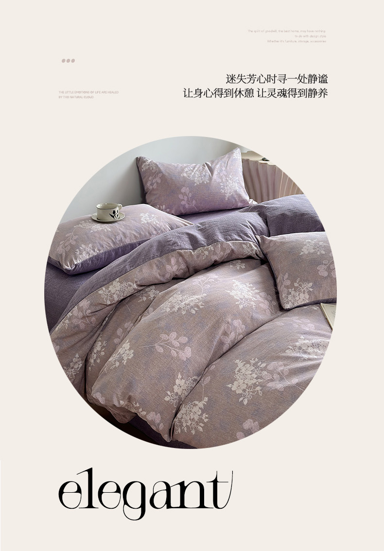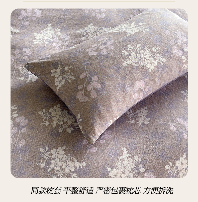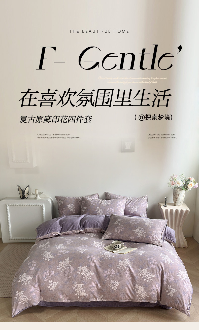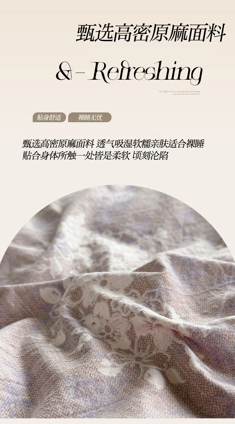 当前位置: 91家纺网 > 商品网购 > 床品套件 > 四件套 > 全棉普通四件套 > 卢赛尔 2025新品加厚130g高克重复古风原麻印花四件套单被套 紫苏槿