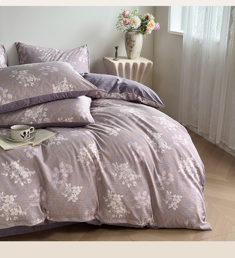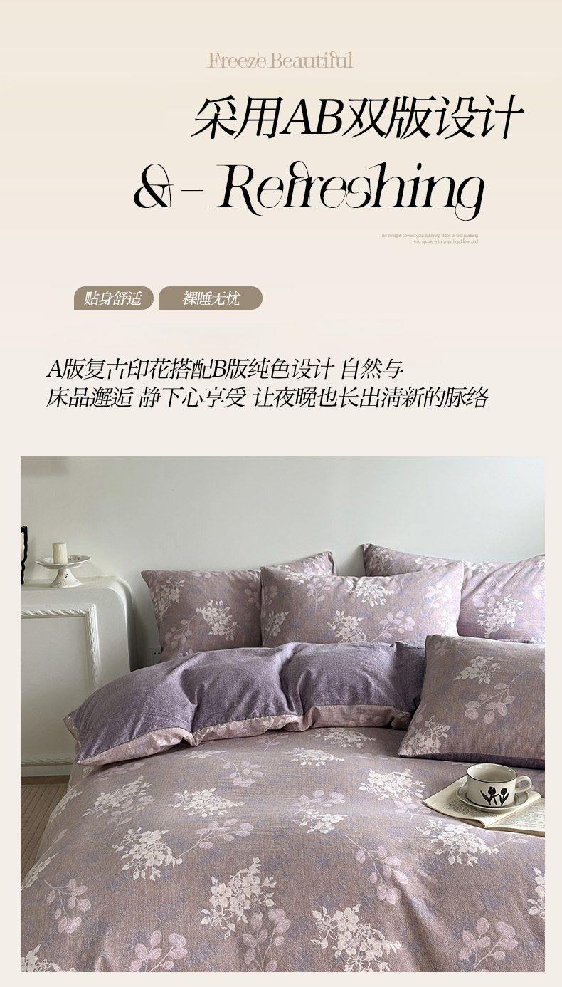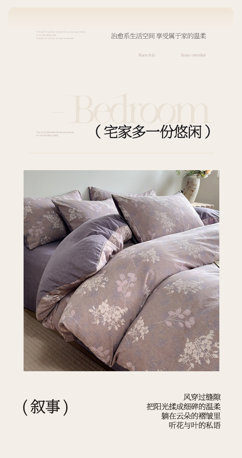 当前位置: 91家纺网 > 商品网购 > 床品套件 > 四件套 > 全棉普通四件套 > 卢赛尔 2025新品加厚130g高克重复古风原麻印花四件套单被套 紫苏槿