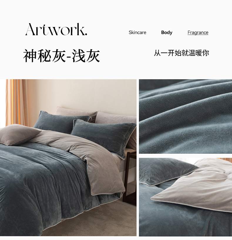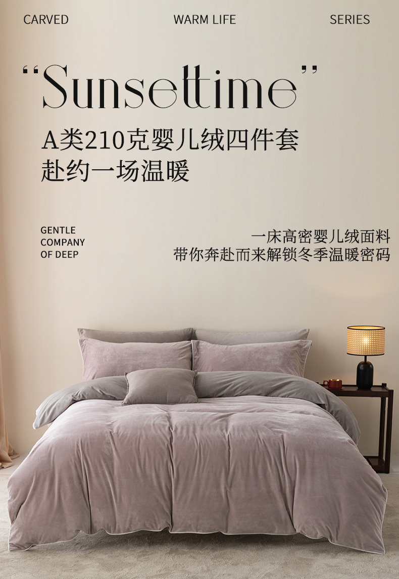 当前位置: 91家纺网 > 商品网购 > 床品套件 > 四件套 > 牛奶绒四件套 > ONE TWO ONE 121 新品【婴儿绒四件套】2025毛毯被子四件套单件被套单件枕套珊瑚绒牛奶绒冬被法兰绒兔毛绒The one 芋泥-浅灰