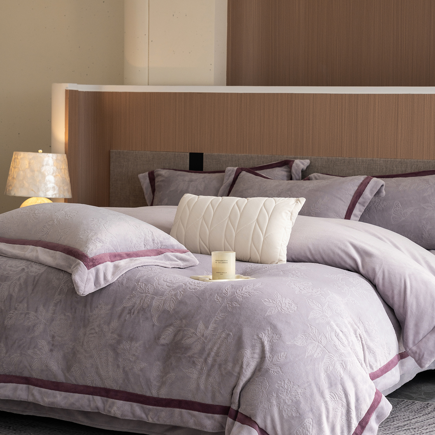 商品名称:蓝梦 2025新款亲肤舒适牛奶绒四件套-繁花系列 繁花-浅紫