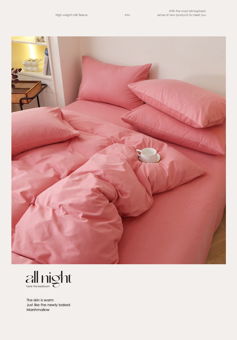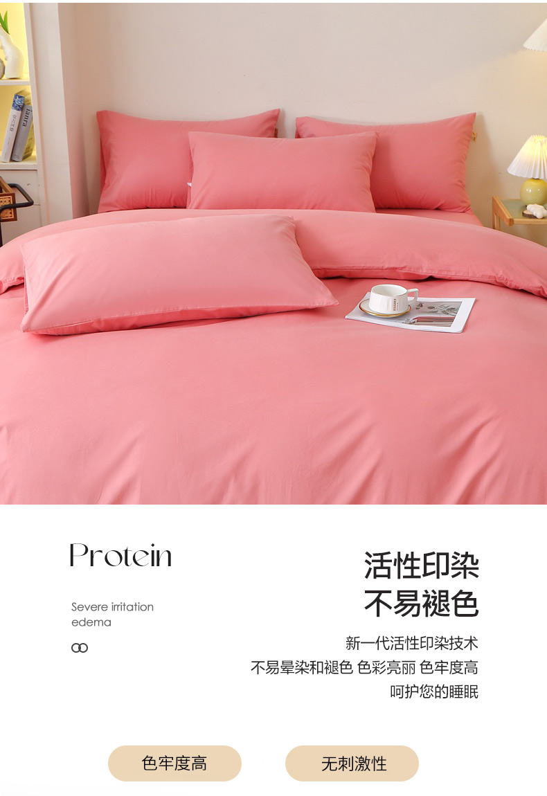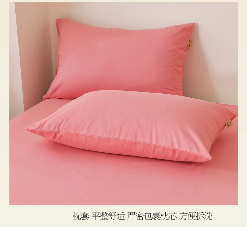 晶缦家纺 2025新款100%纯棉13376纯色喷气全棉磨毛四件套和单品被套床单床笠枕套-单枕套 暖芸馨-蕊红玉