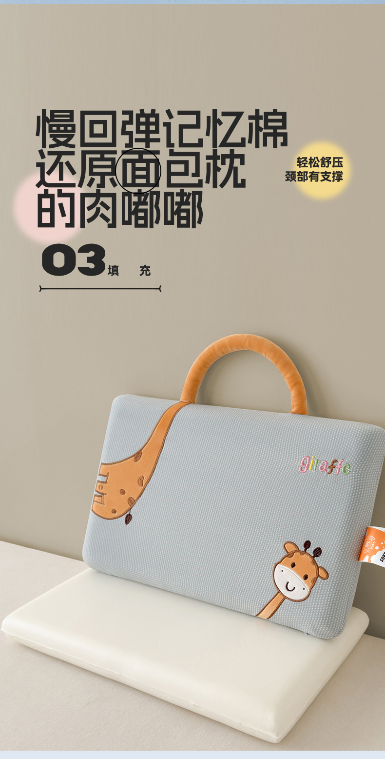 当前位置: 91家纺网 > 商品网购 > 枕头/枕芯/保健枕/颈椎枕 > 枕头枕芯 > 麦肯锡 2025新款长颈鹿面包儿童记忆枕 枕头枕芯 蓝色/只