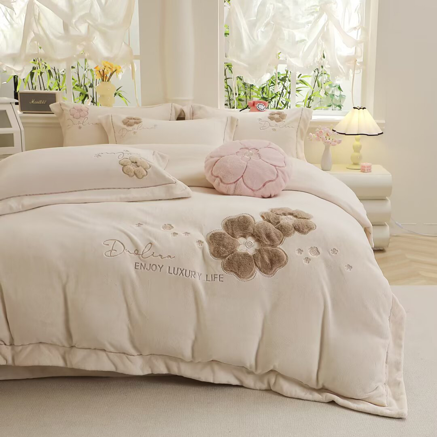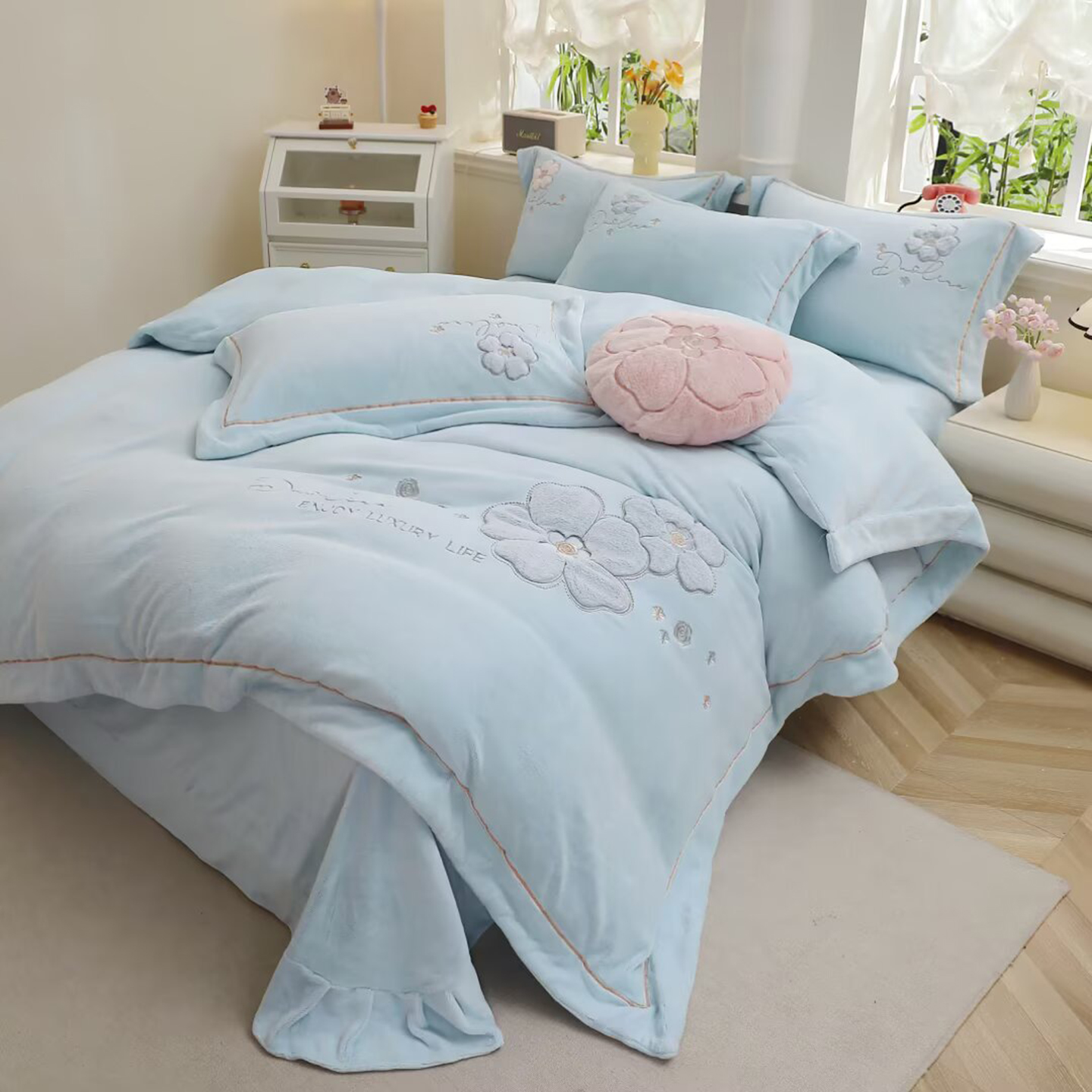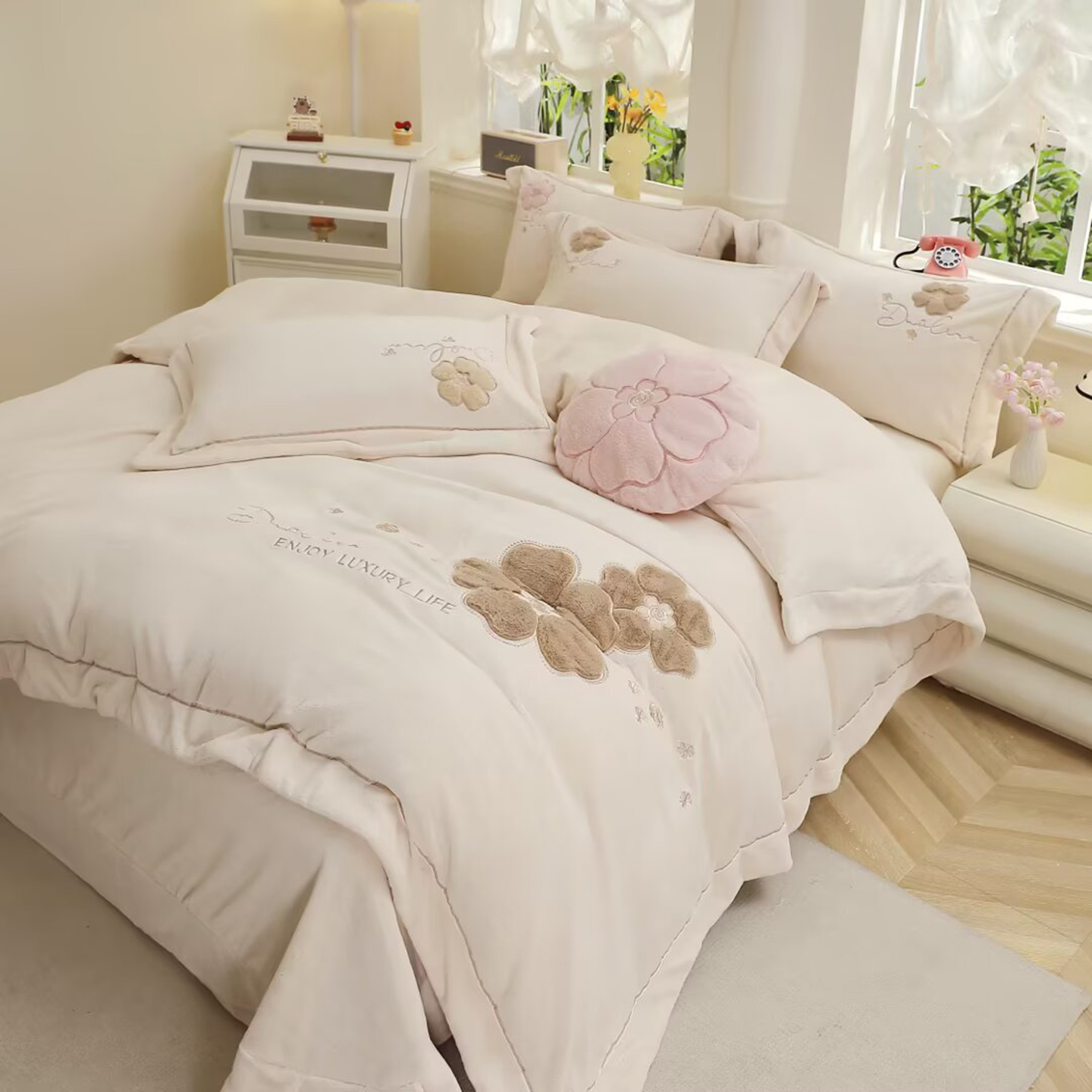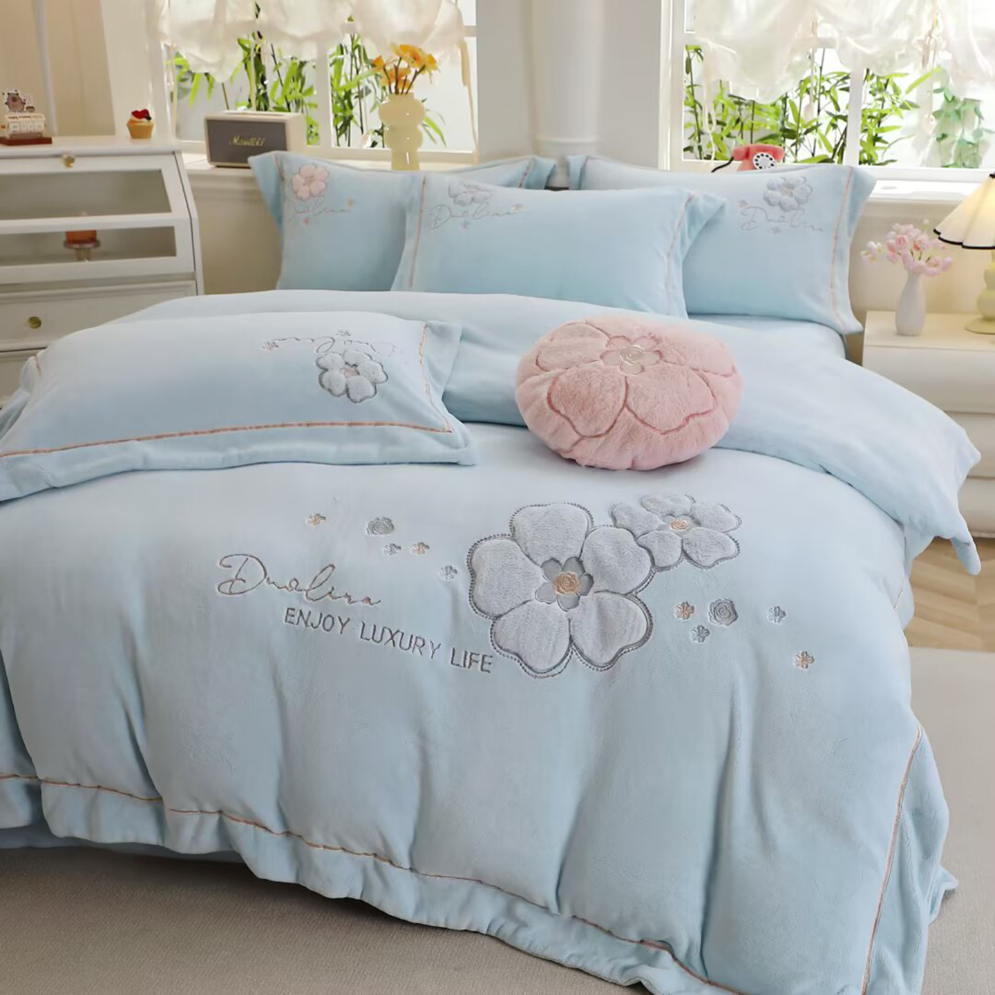 (总)棉生活家纺 2025新款高奢工艺260克A类牛奶绒兔毛贴布绣四件套-秀妍,秀妍-粉玉,秀妍-浪漫紫,秀妍-牛奶咖,秀妍-青草绿,秀妍-天空兰,秀妍-樱花粉