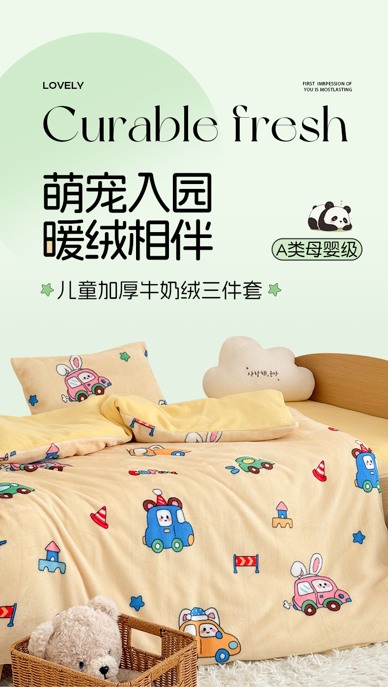 当前位置: 91家纺网 > 商品网购 > 床品套件 > 三件套 > 嗨生活 2025新款加厚牛奶绒三件套儿童套件幼儿园三件套系列 巴士汽车