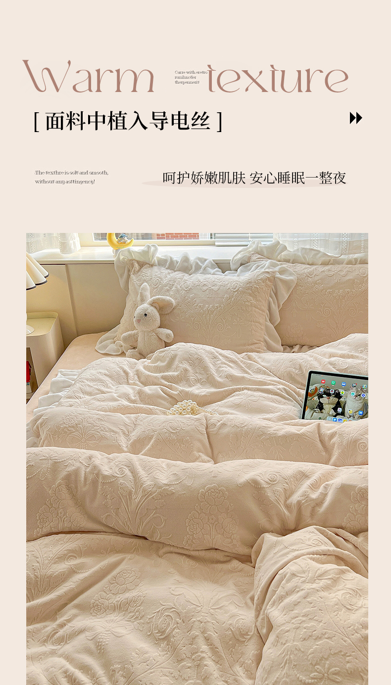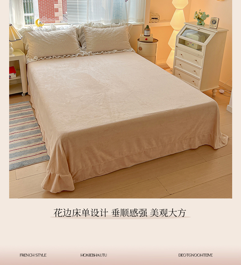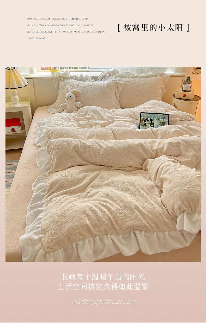 当前位置: 91家纺网 > 商品网购 > 床品套件 > 四件套 > 牛奶绒四件套 > 亿梵家居 2025新款法式花边款A类5D牛奶绒立体雕花四件套(提供买家秀) 花边款 芙洛拉-奶油白