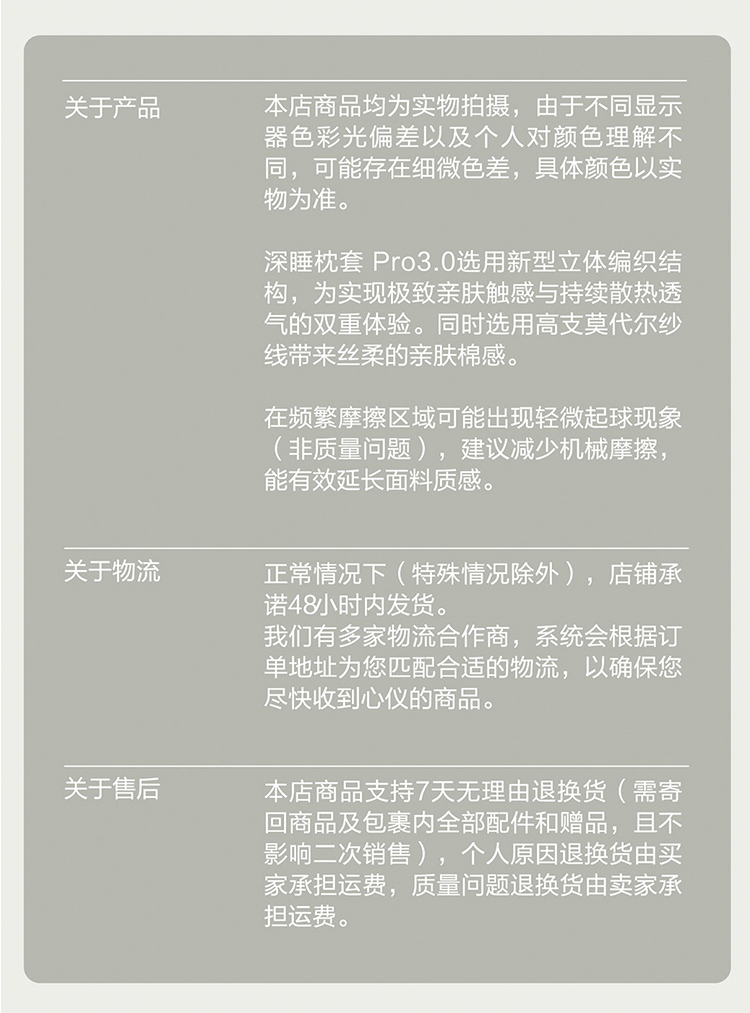 | 非质量问题、不影响二次销售,在30天内支持退换货。 | |