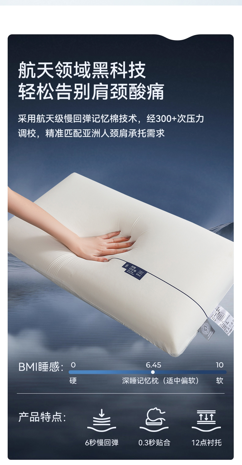当前位置: 91家纺网 > 商品网购 > 枕头/枕芯/保健枕/颈椎枕 > 枕头枕芯 > (总)七夜居 2026新款某朵同款慢回弹深睡太空记忆枕芯面包枕 枕头枕芯记忆枕