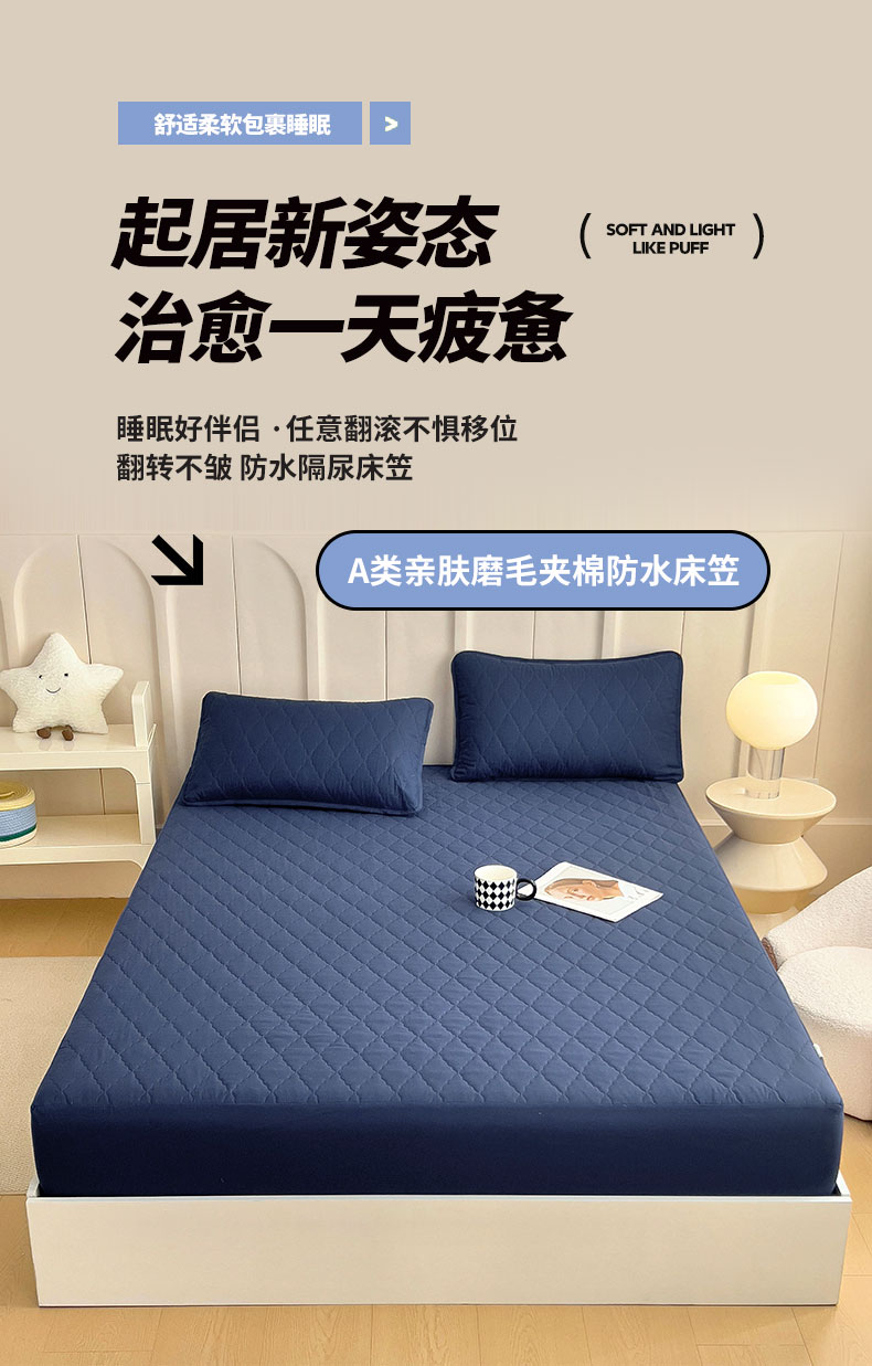 • 91家纺网 家纺一手货源 找家纺 蝶蔻家纺 2025新款亚马逊外贸跨境亲肤磨毛夹棉涤纶TPU防水床笠虾皮希音Temu爆款 蓝色,蓝色