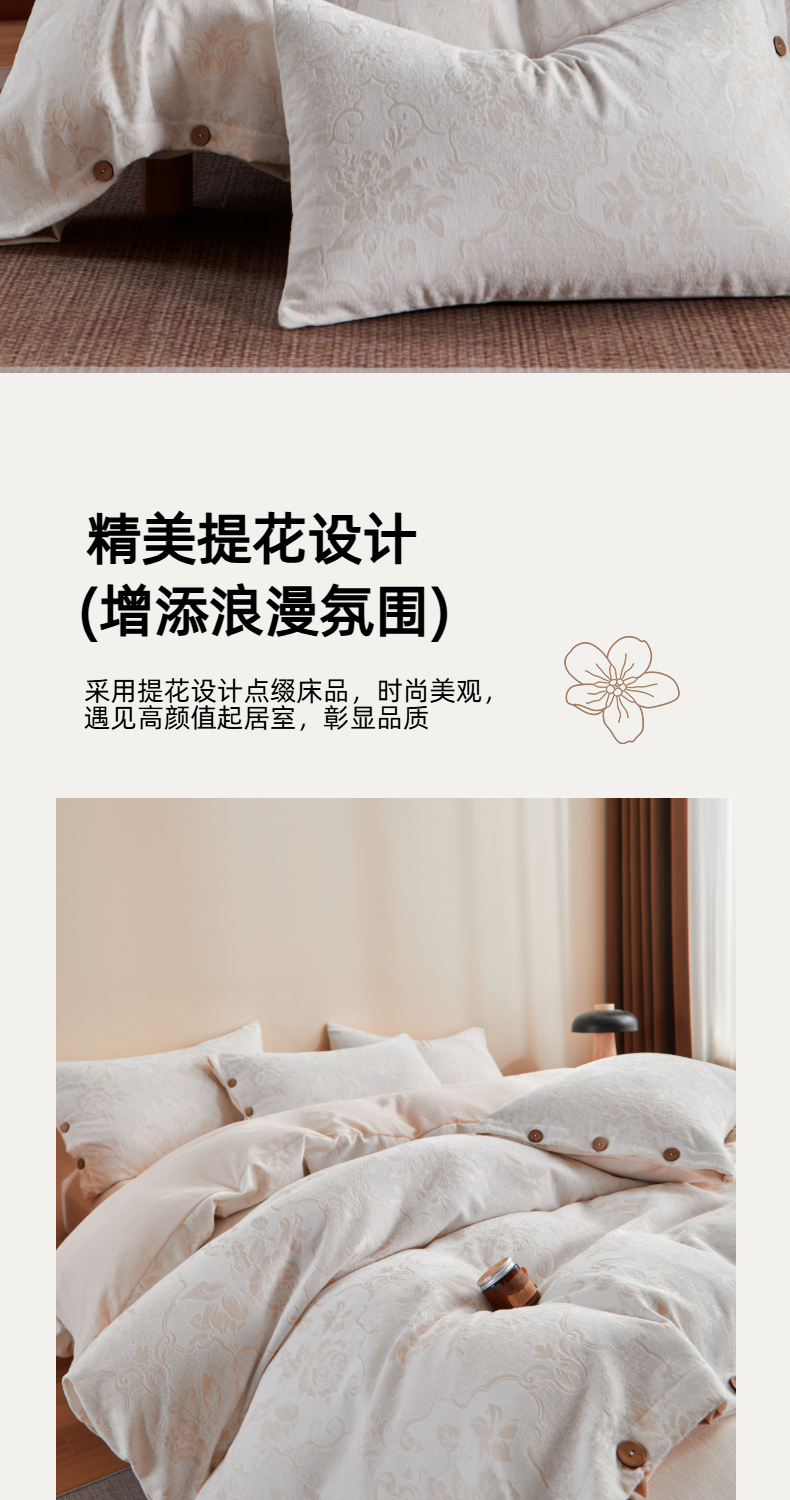 当前位置: 91家纺网 > 商品网购 > 床品套件 > 四件套 > 其它四件套 > 润肤居 2025新款雪尼尔棉绒大提花四件套 小茉莉-小麦色