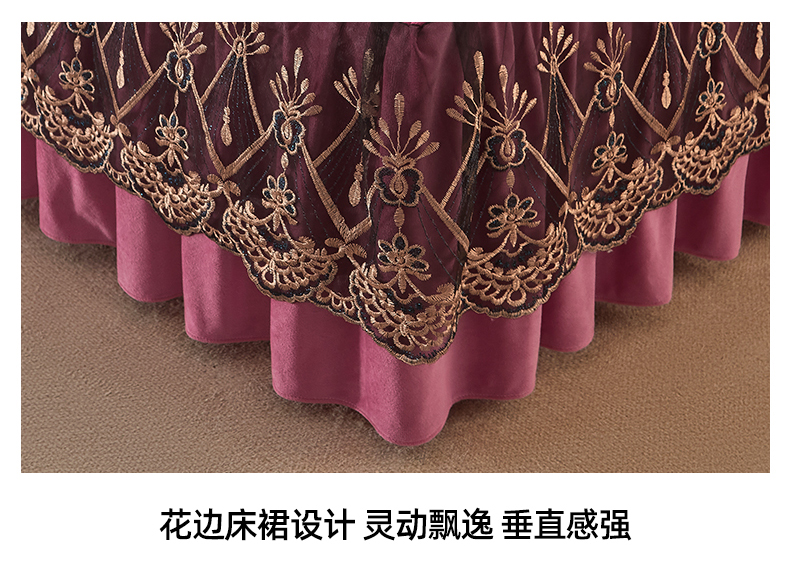 • 91家纺网 家纺一手货源 找家纺 (总)屹成家纺2025新款水晶绒夹棉绗缝蕾丝床裙三件套(塞纳河畔)床裙单件起售价不低于105元,大红,豆沙,翡翠绿,粉玉,橄榄绿,蔚蓝,银灰