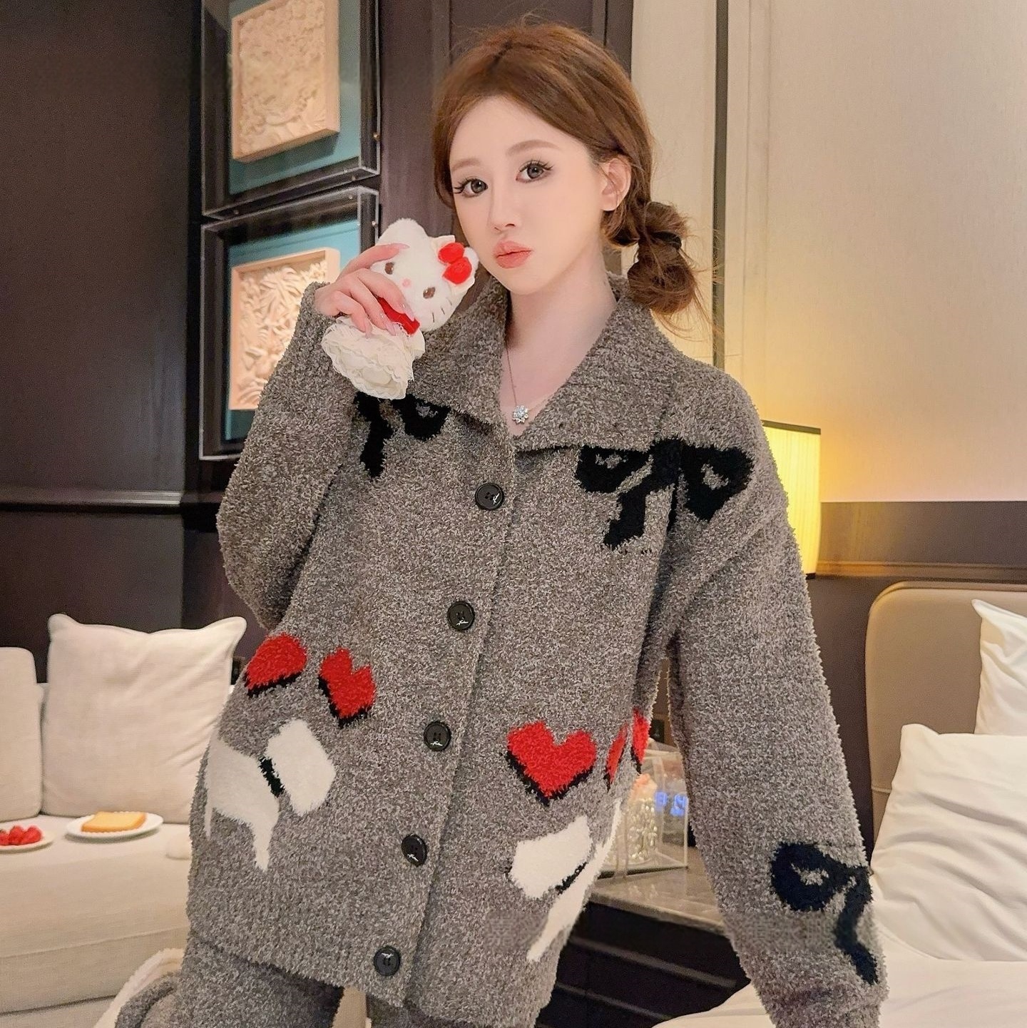 商品名称:洛兰沙家居馆 2025新款半边绒睡衣女高级感开衫直筒裤家居服加厚可外穿百搭睡衣家居服 半边绒29