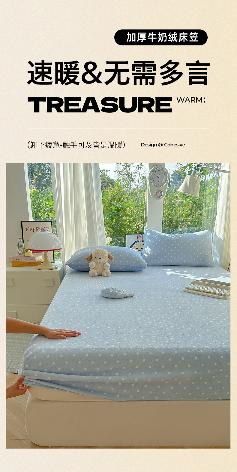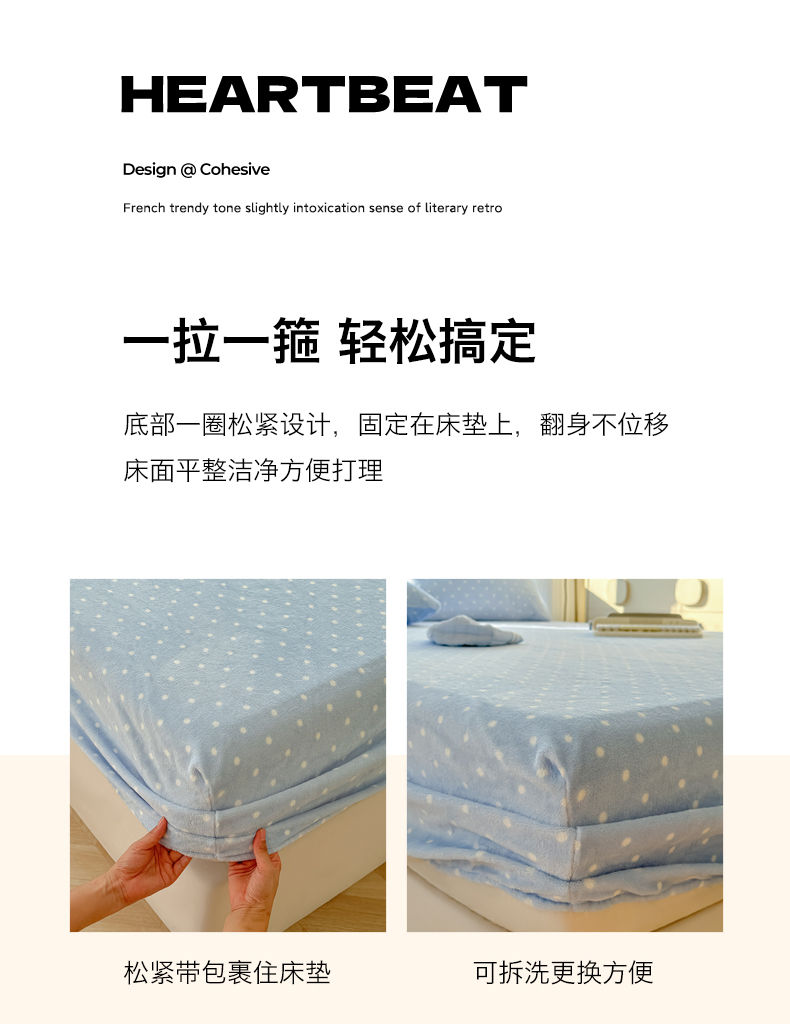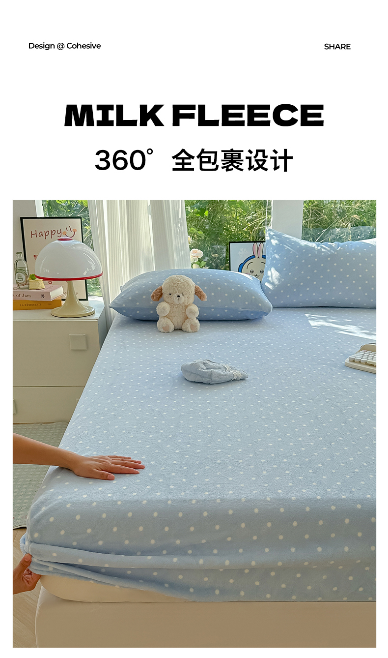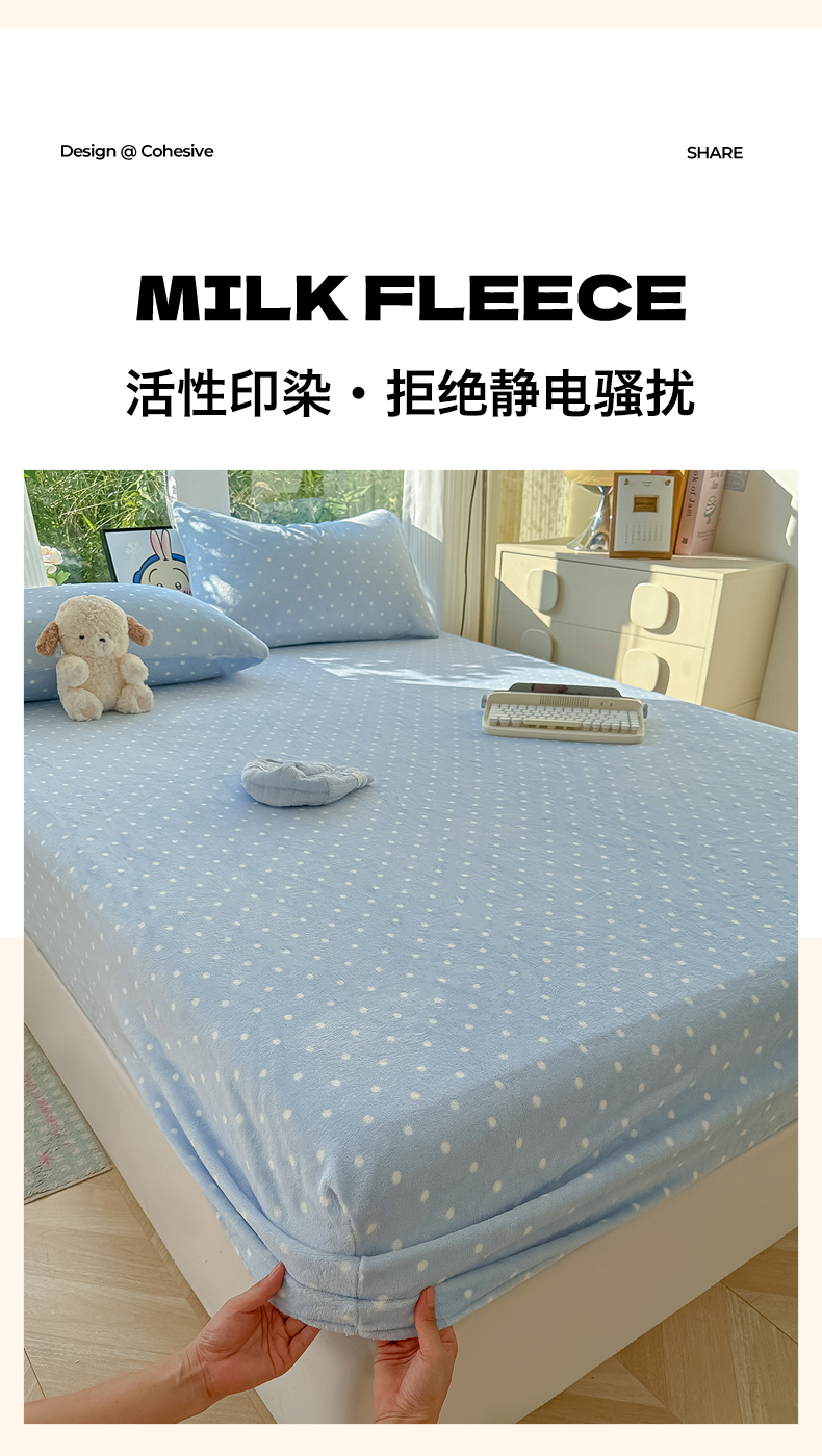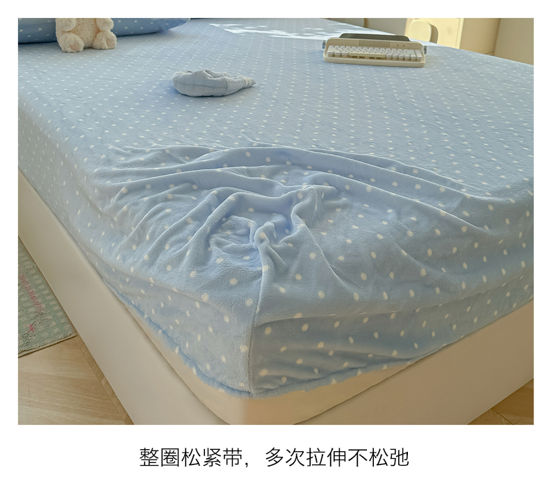 • 91家纺网 家纺一手货源 找家纺 沐芷 2025 加厚高克重牛奶绒床笠单件/床笠三件套  床笠款床罩床垫保护套罩 【绒】爱情蓝波点
